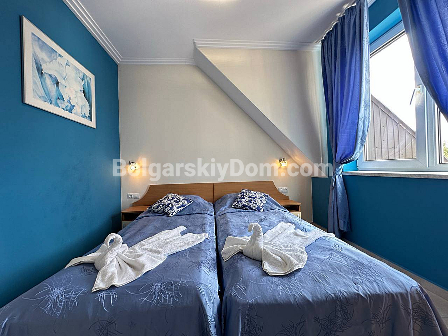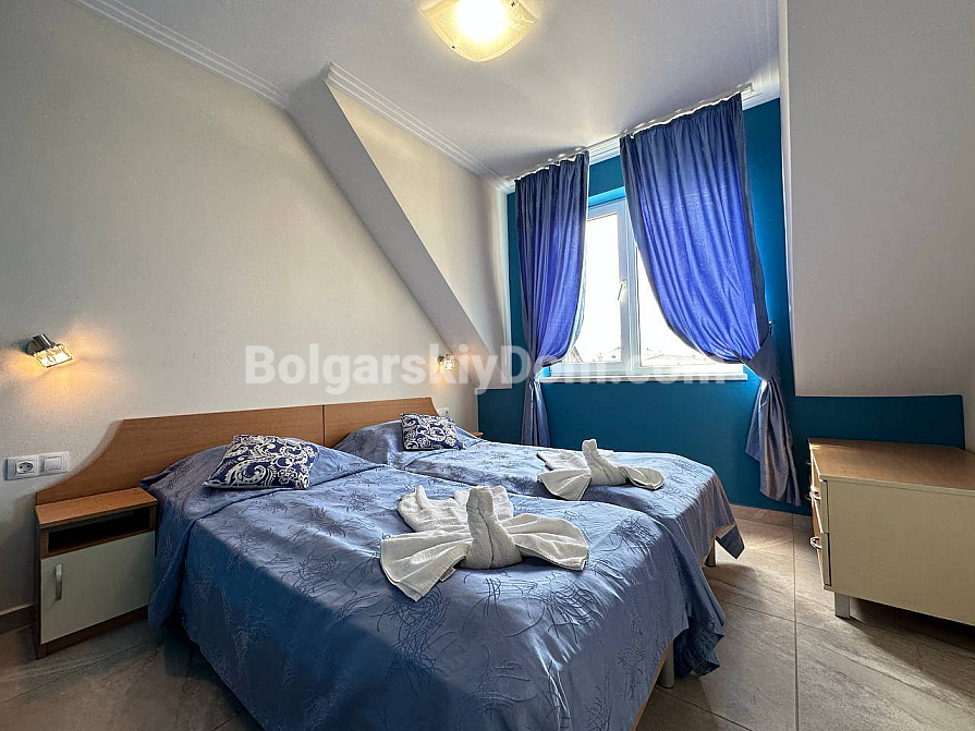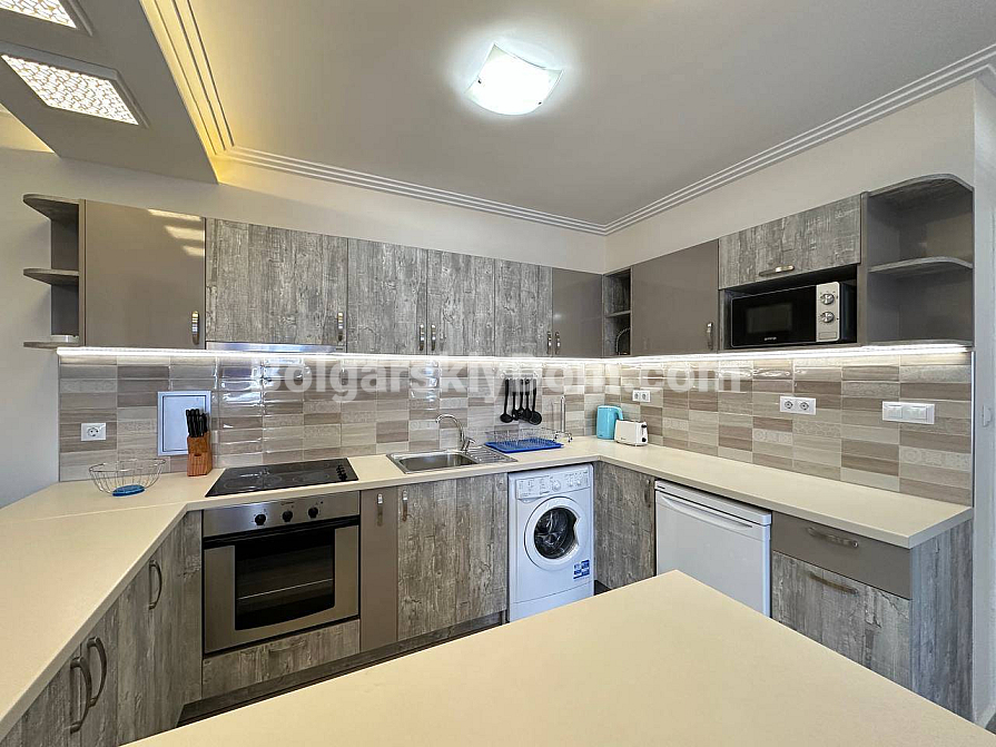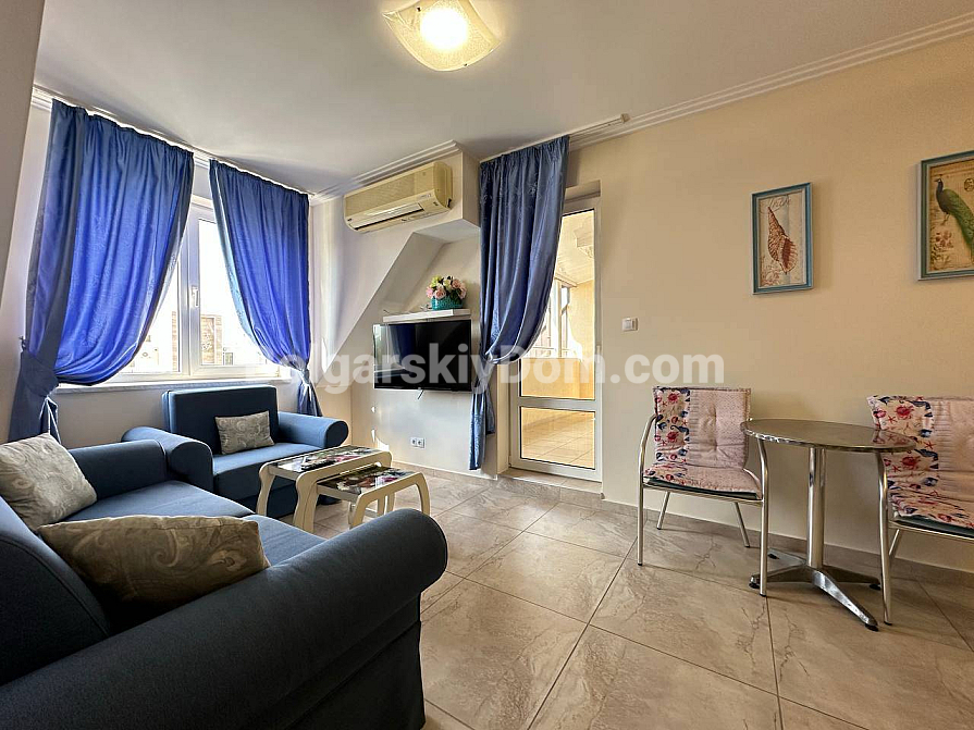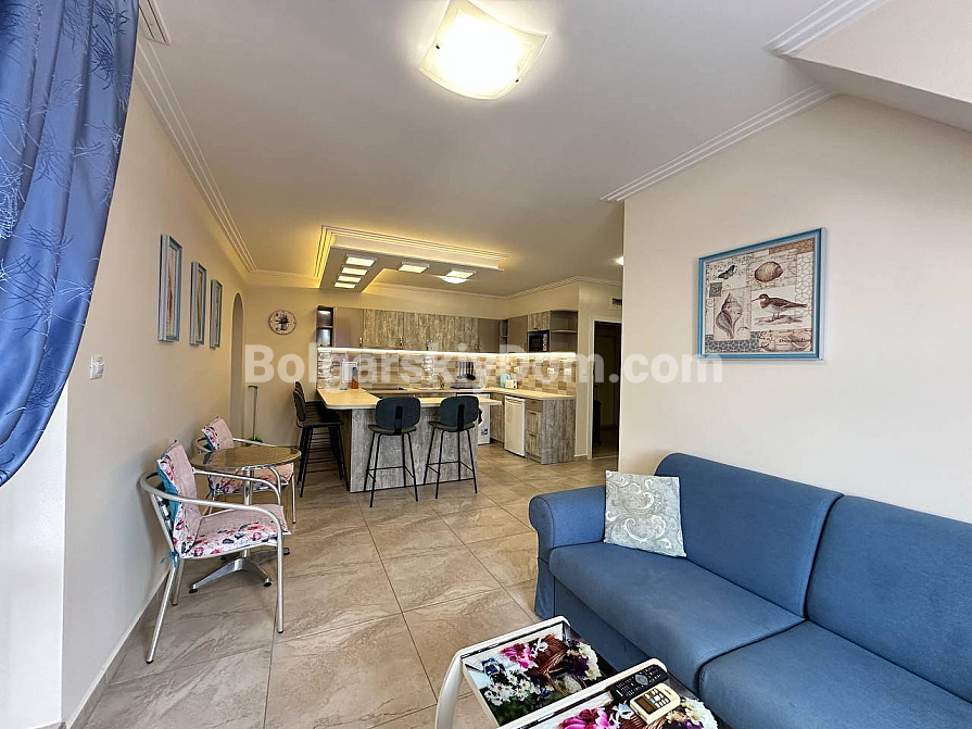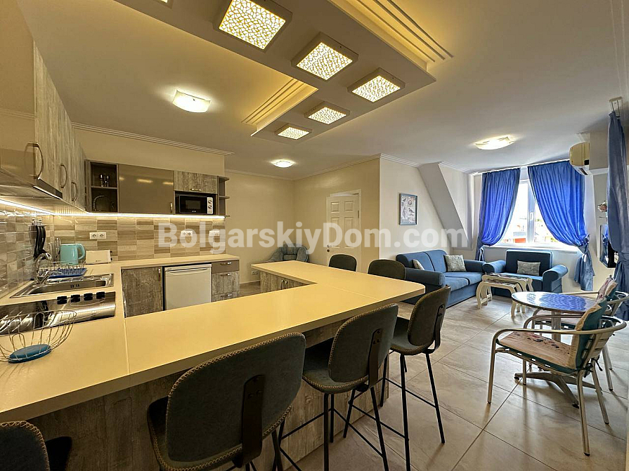 Forget about boring interiors — today, Bolgarskiy Dom presents a truly bright and spacious apartment with stylish designer accents! On the sixth and top floor of the Sea Dreams complex, a two-bedroom apartment with a total area of 85 sq.m. is for sale, fully ready to move in. Here you will find a modern corner kitchen with a full set of built-in appliances — from the oven and stove to the microwave and washing machine. The living room is filled with light thanks to large windows and decorated in cozy blue tones, while the bedrooms are designed for maximum comfort, featuring a panoramic window and access to the balcony in the main room. Even the bathroom stands out with its vivid, modern details and a glass sink. Excellent price and perfect move-in condition.