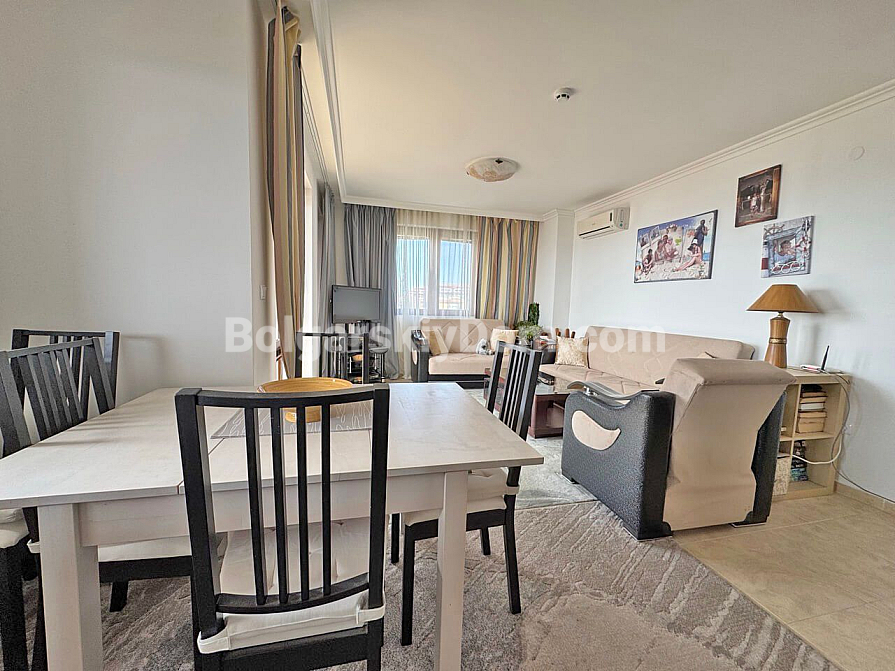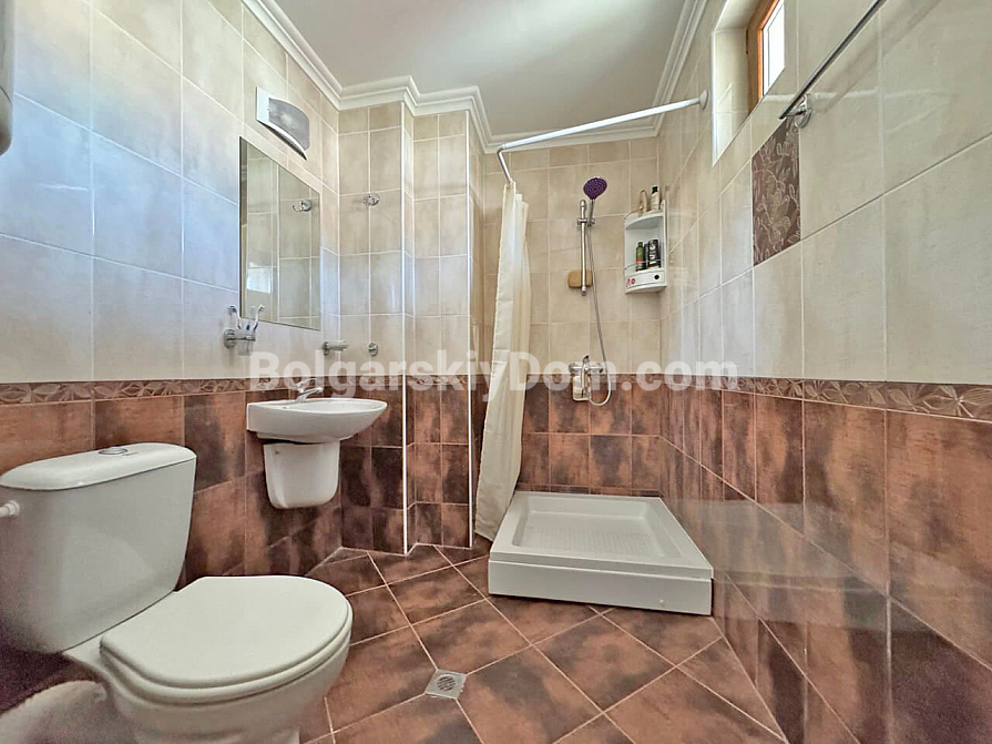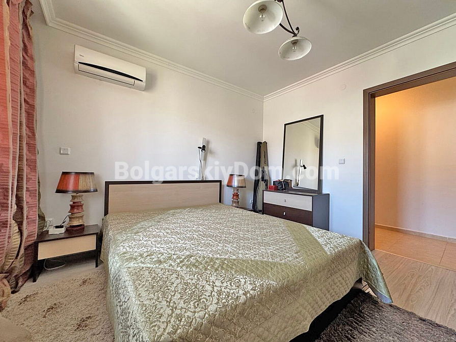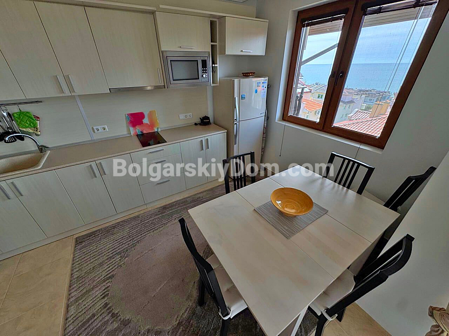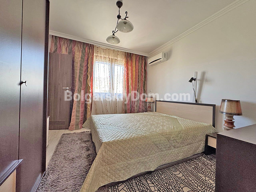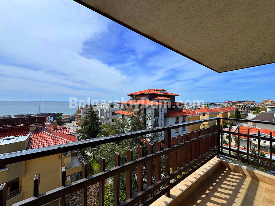 We offer for sale a spacious three-room apartment with two bathrooms, located on the 4 floor of the “Centaur” complex in Sveti Vlas. The apartment has an area of 88 m² and offers a magnificent panoramic sea view. The property is fully furnished and equipped with everything needed for comfortable living. It consists of a bright living room with a kitchen, two cozy bedrooms, two fully equipped bathrooms, and a terrace with a sea view. The apartment is in excellent condition and ready for immediate occupancy.