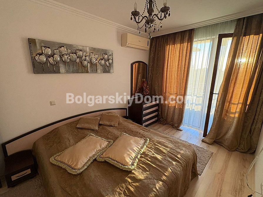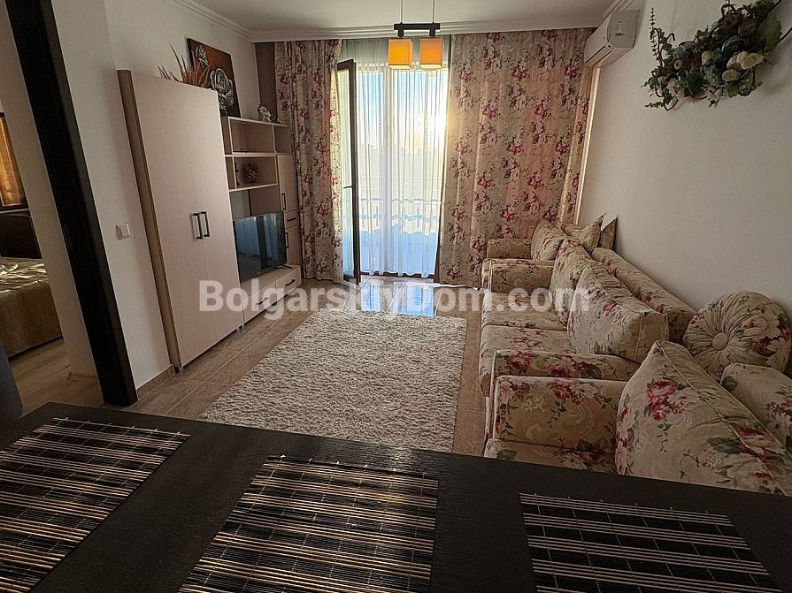 Don’t miss this opportunity! Bolgarskiy Dom presents a luxurious start in the most prestigious area of the resort. In the Olymp complex, a spacious one-bedroom apartment with an area of 69 sq.m. is for sale on the fifth floor. Forget about renovations — the apartment is in excellent condition, fully furnished with beautiful furniture, and equipped with high-quality appliances. The functional layout includes an entrance hall, a living room with a kitchen area, a separate bedroom, a modern bathroom with a shower cabin, and a private balcony with a relaxation area. This is a home ready for immediate move-in, created for maximum comfort.
