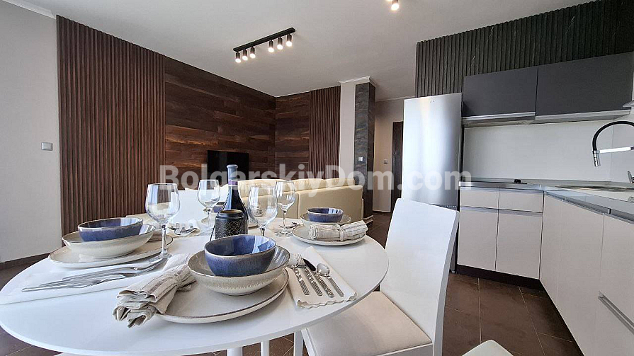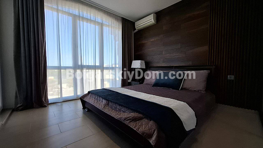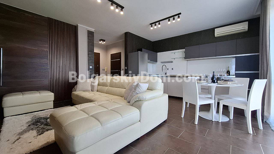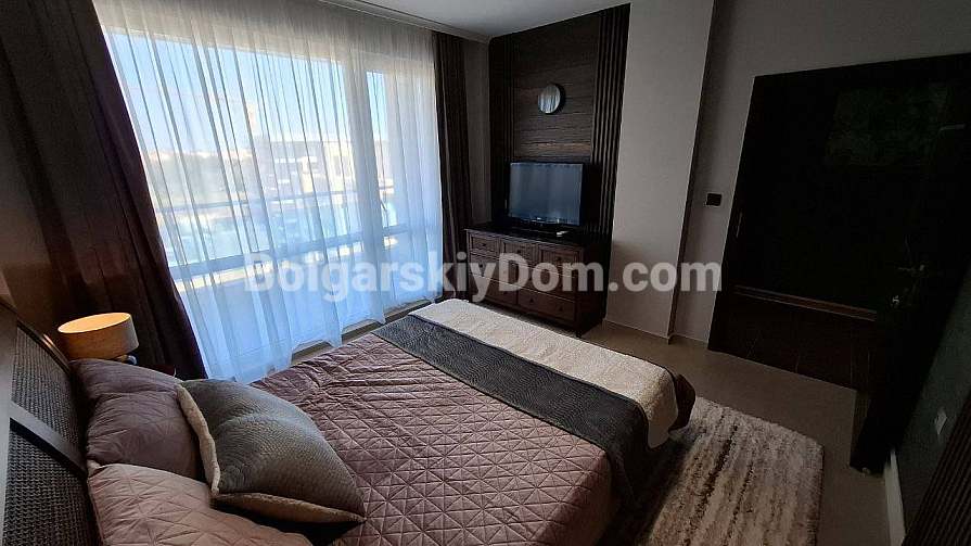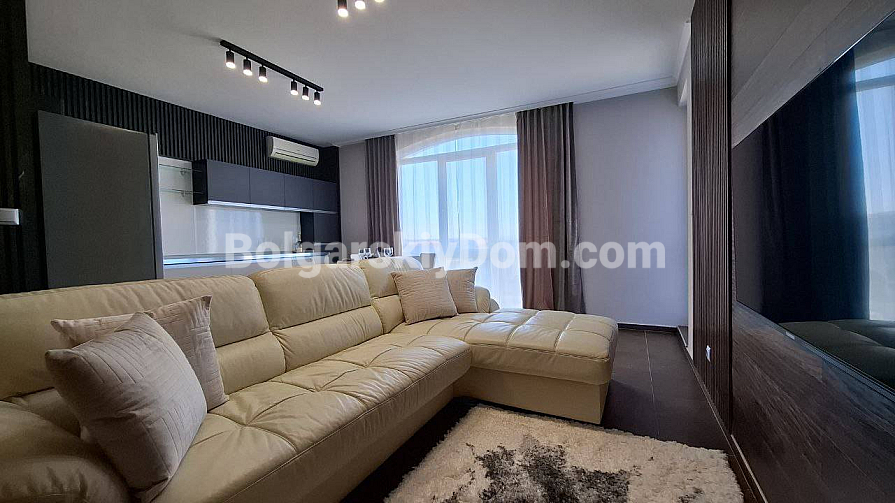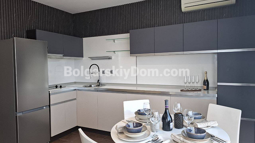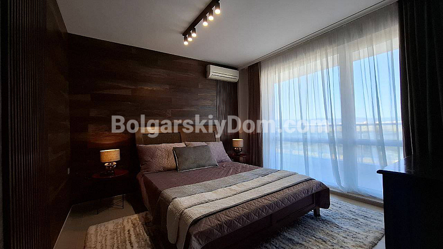Forget about compromises – this apartment is all about comfort worthy of permanent living, even if you plan to use it only for holidays. Bolgarskiy Dom presents a stylish and truly spacious two-bedroom apartment in the modern Odyssey complex. The total area of 110 sq.m. is exceptional for resort housing. Located on the fourth floor in a building with an elevator, the apartment boasts an ideal layout: a bright living room combined with a kitchen and dining area, two full bedrooms, and – which is incredibly convenient for a family – two bathrooms. The apartment is sold fully furnished and equipped with appliances, is in excellent condition, and has a balcony with a dedicated relaxation area.