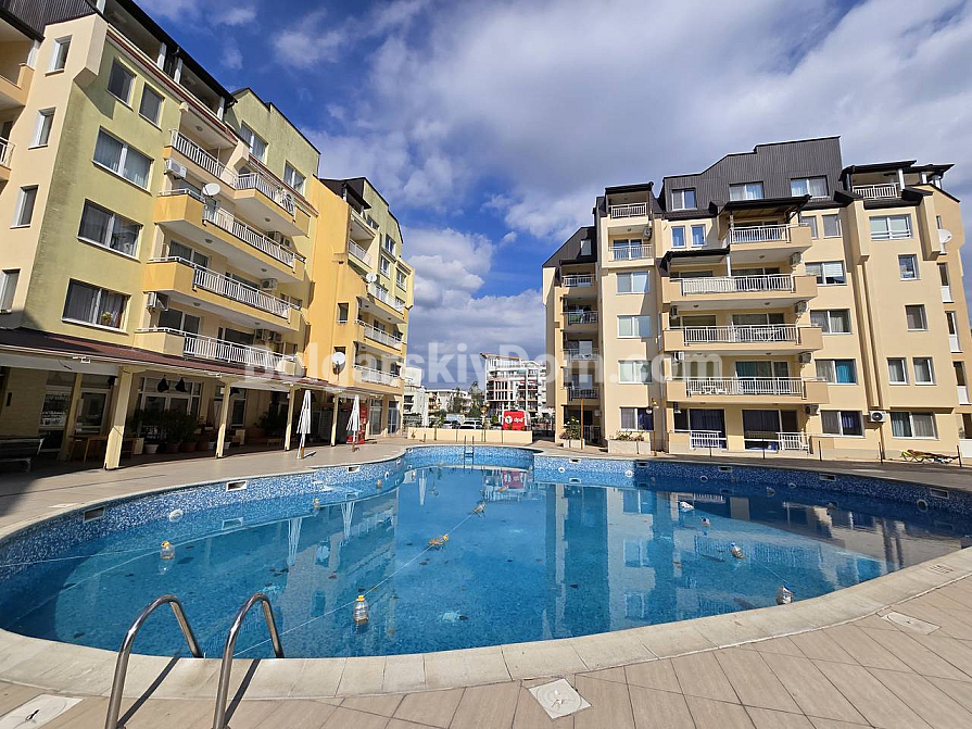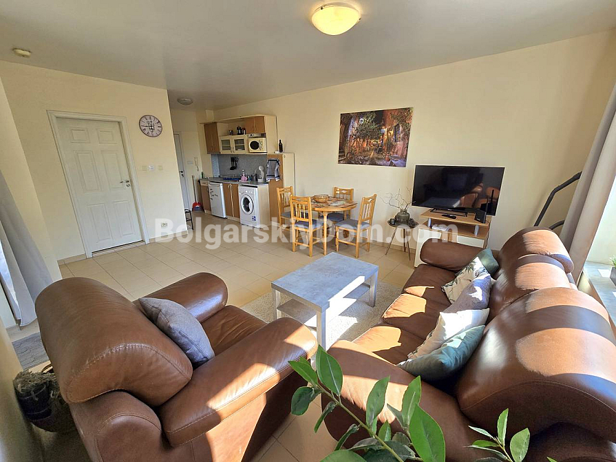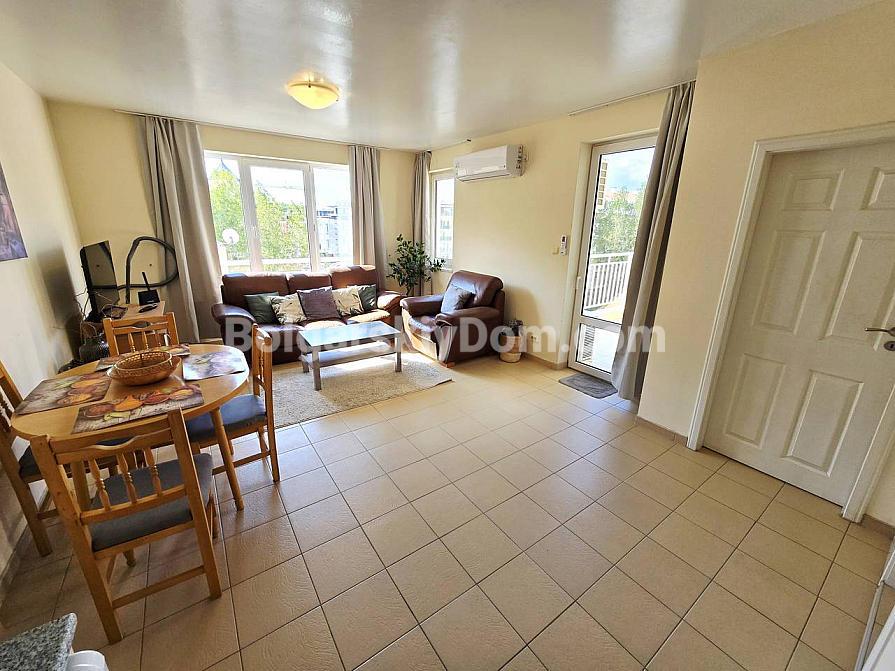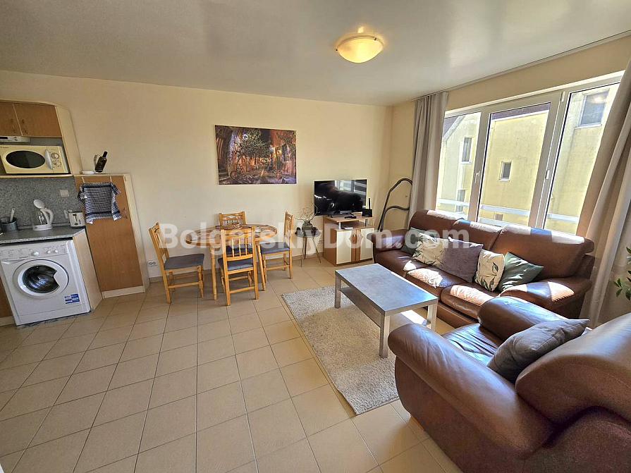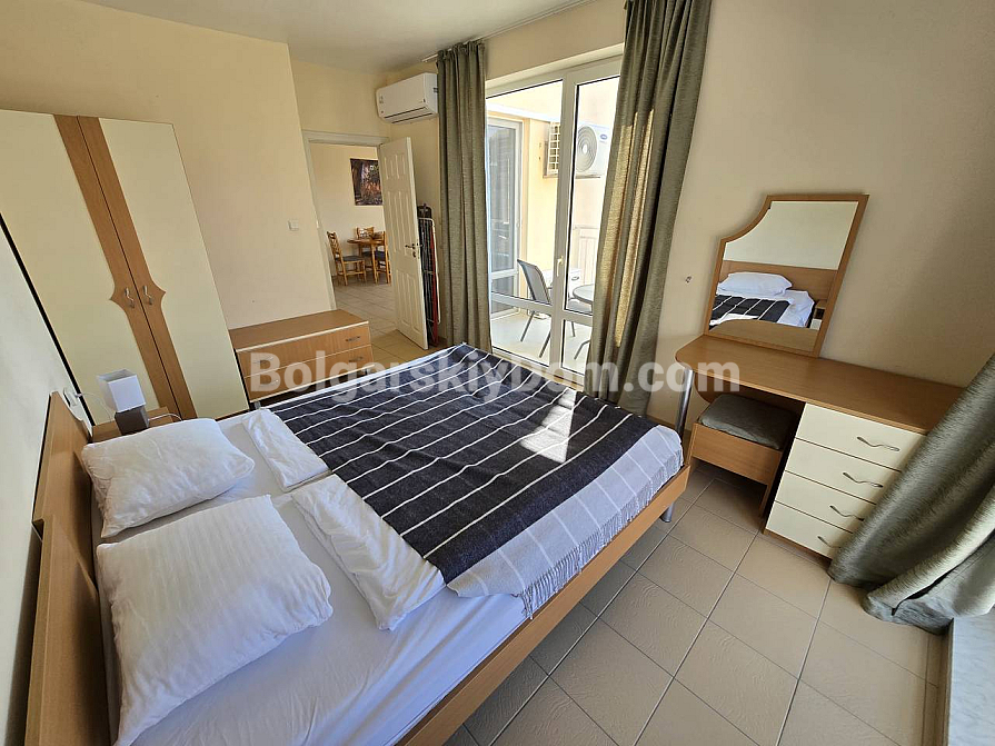 We offer for sale an excellent one-bedroom apartment in a modern residential complex Sea Dreams, located in one of the most sought-after areas of Sunny Beach resort. The square footage is 65 square meters, the fourth (penultimate) floor. A bright living room with a separate kitchen area in an alcove and a dining area, a separate bedroom with two large windows, a bathroom with a shower cabin and a cozy terrace with a seating area are the perfect place for morning coffee or evening with a glass of wine. The apartment is sold with furniture and household appliances — you can come in and live right away! The condition is excellent, the elevator is working, there is a separate electricity bill.