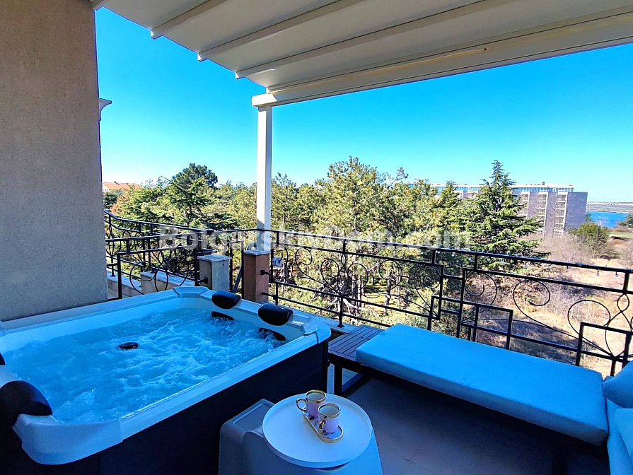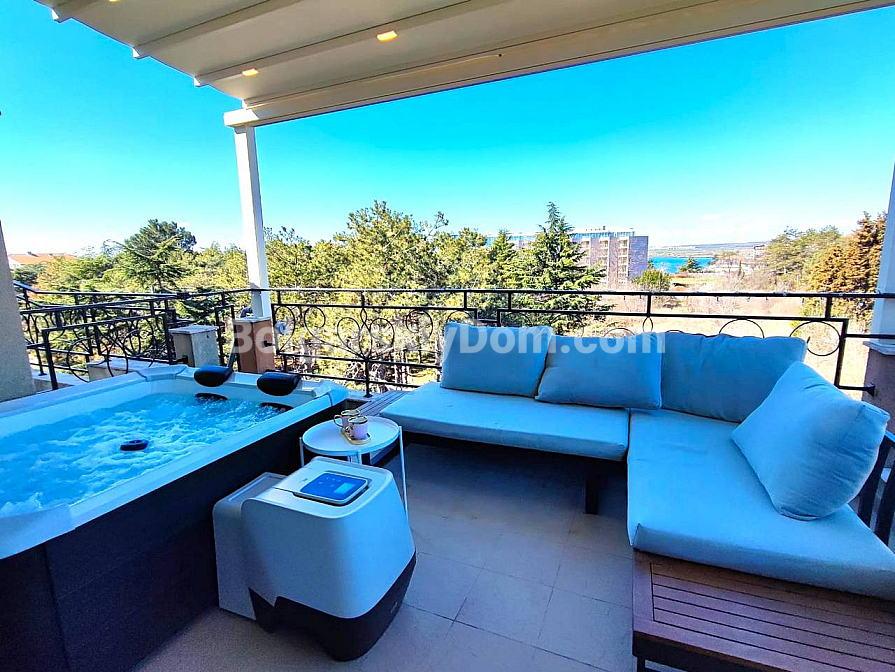 How about having your own private spa corner right on the balcony with a city view? Bolgarskiy Dom presents a spacious two-room apartment with an area of 62 sq.m. in a cozy family complex located in the balneological resort of Pomorie. Situated on the fourth floor of a modern building with an elevator, this apartment offers an ideal layout: a living room with a kitchen, a separate bedroom, and a spacious bathroom. But the main highlight is the large balcony, equipped with a relaxation area and a private jacuzzi! The apartment is sold fully furnished and equipped with household appliances, and thanks to the presence of Act 16 and domestic utility tariffs, it is perfect for year-round living.