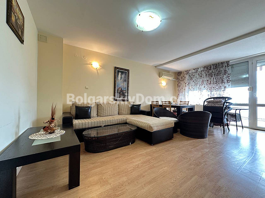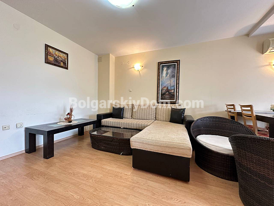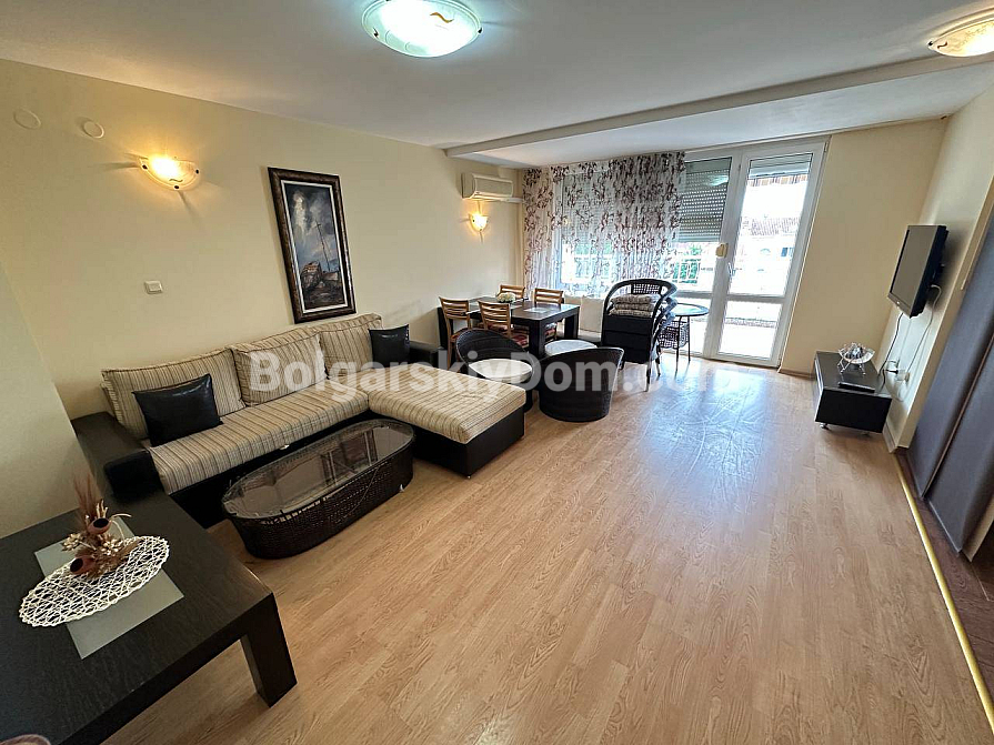 Why choose between price and comfort when you can have both? Bolgarskiy Dom presents a truly comfortable two-bedroom apartment with a total area of 115 sq.m. in the Sunny Fort complex. The apartment is located on the fourth floor and offers a perfectly functional layout: a spacious living room with a cozy corner sofa and relaxation area, as well as two bright, separate bedrooms. The kitchen is fully equipped with modern household appliances. A major advantage for families is the presence of two full bathrooms, which significantly increases living comfort. The apartment is fully furnished and ready for immediate occupancy.