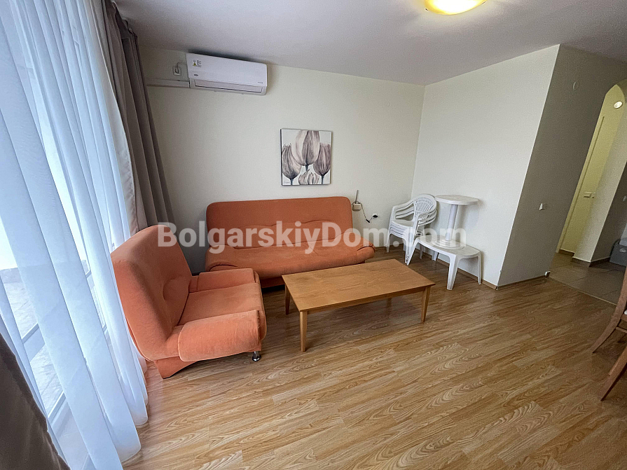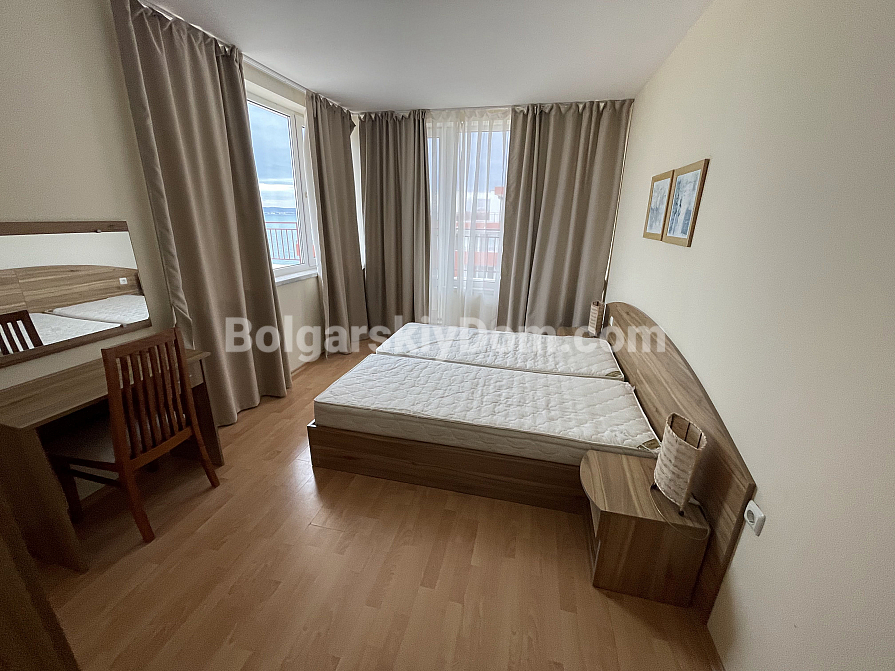 From Bolgarskiy Dom – a top new listing! A true benchmark of beachfront real estate with a guaranteed panoramic sea view! This spacious one-bedroom apartment of 123 sq.m. is located in the legendary Marina Fort complex. Situated on the 5th floor, it offers a perfect layout: a full entrance hall, a large living room, a separate bedroom, and a bathroom with a shower cabin. The main highlight: a huge balcony with a relaxation area offering a breathtaking view of the Black Sea. The property is fully furnished and equipped with appliances, providing everything needed for comfortable year-round living and ready for immediate move-in.