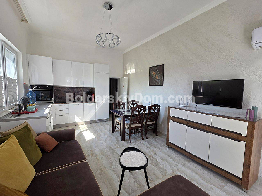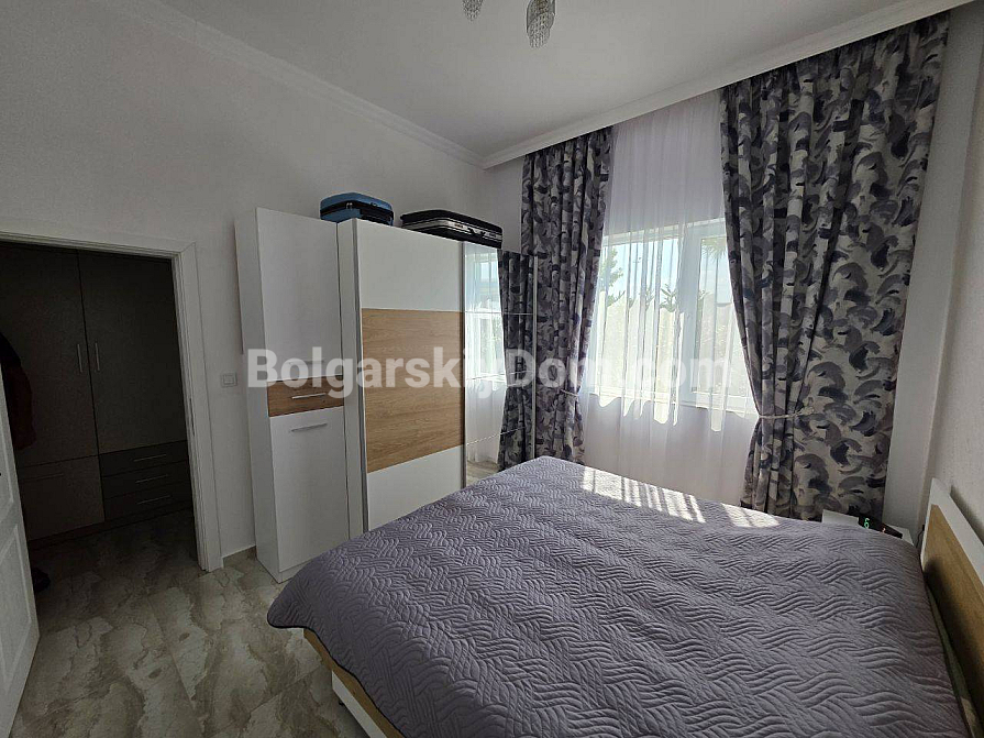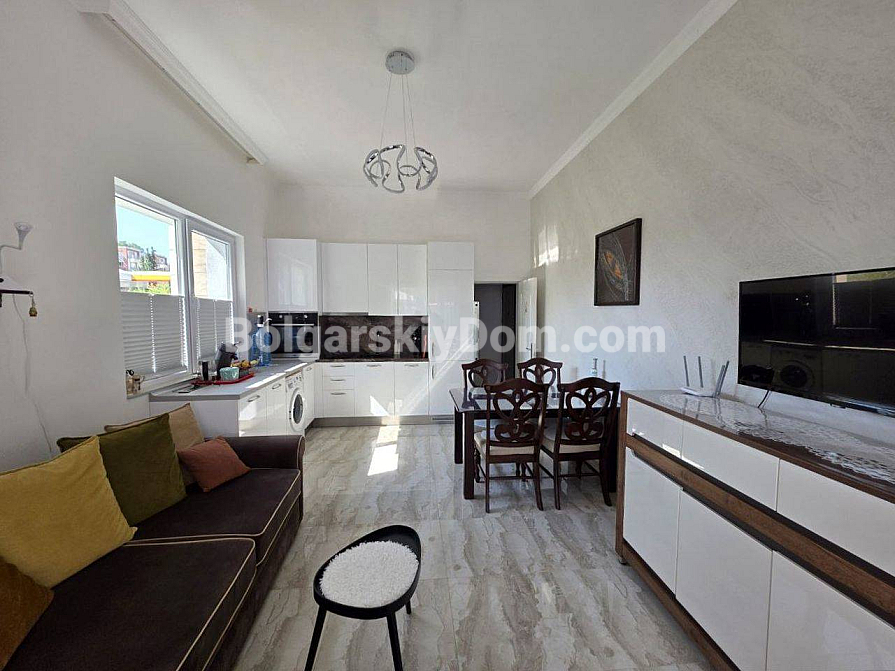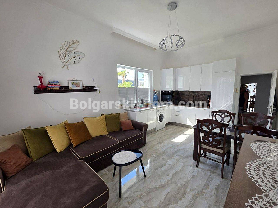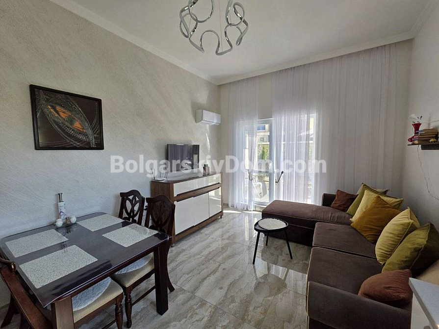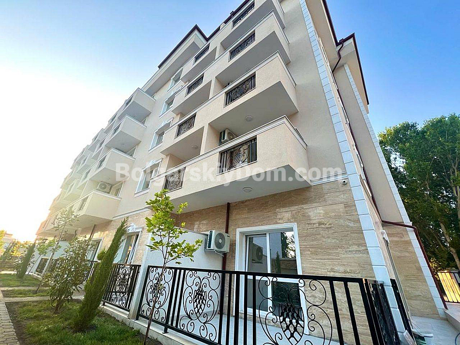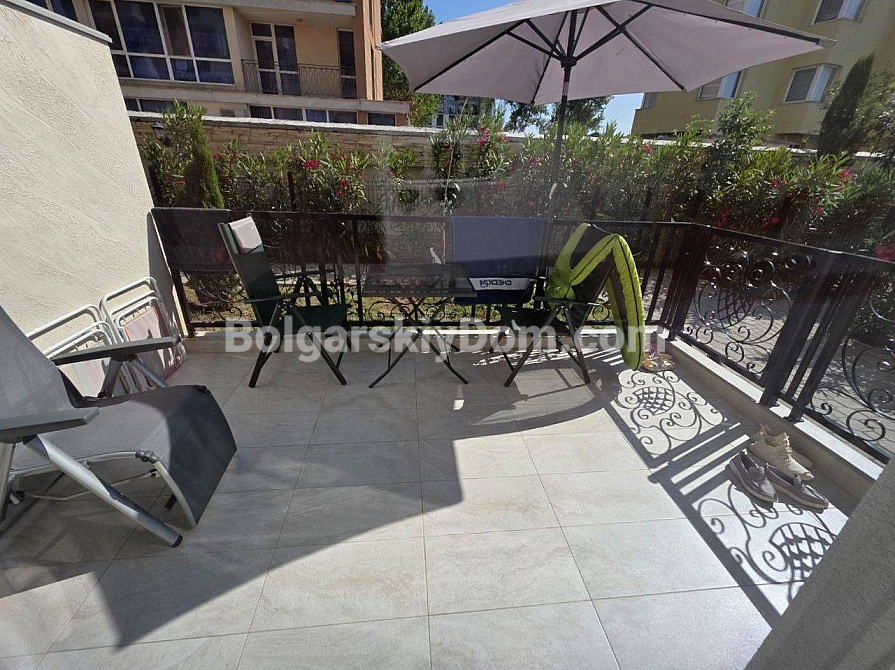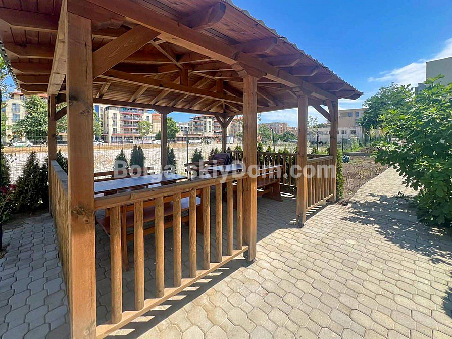 Your perfect one-bedroom apartment with high ceilings and direct access to a green area is waiting for you in the very heart of the resort! Bolgarskiy Dom presents a 67 sq.m. apartment for sale in the new residential complex Magnolia 6 in Sunny Beach. The apartment is located on the ground floor, offering the advantage of a large terrace with a relaxation area. The main feature: ceiling height of 3.3 meters, which creates an incredible sense of space and light. The apartment has an excellent layout, including an entrance hall, a spacious living room with a kitchen area, and a separate bedroom. It is in perfect condition and comes with brand new quality furniture and appliances.