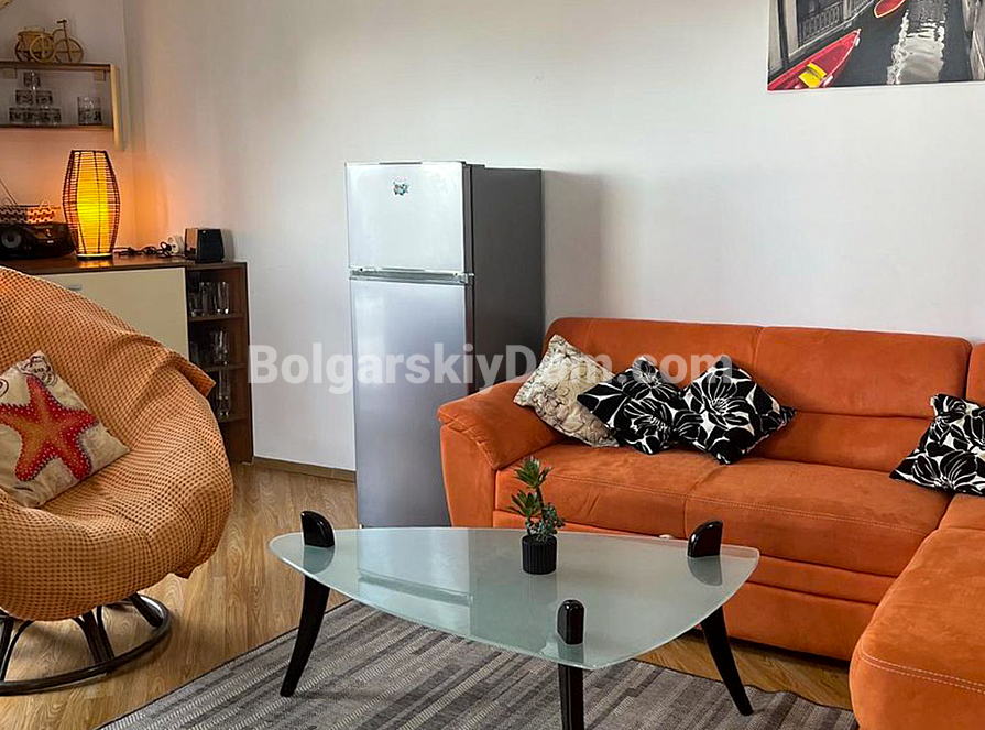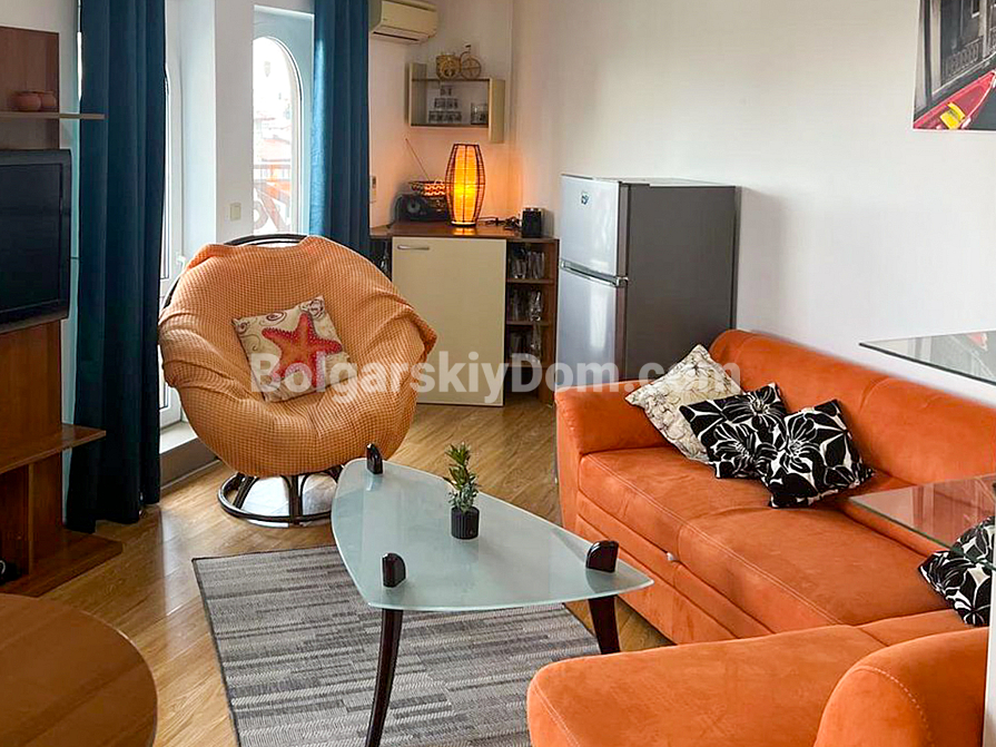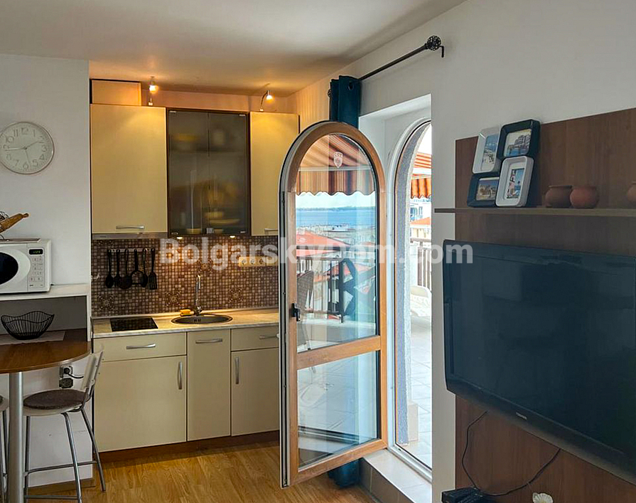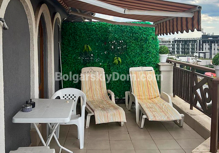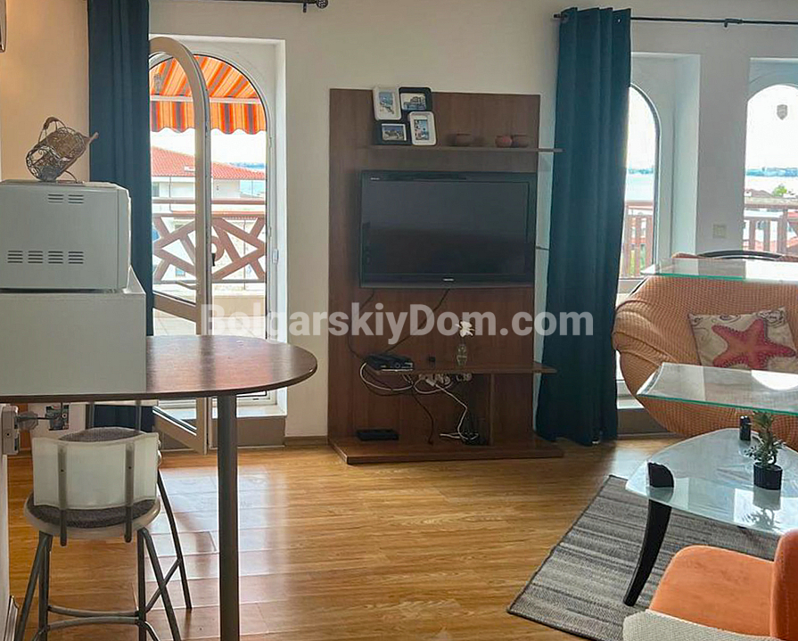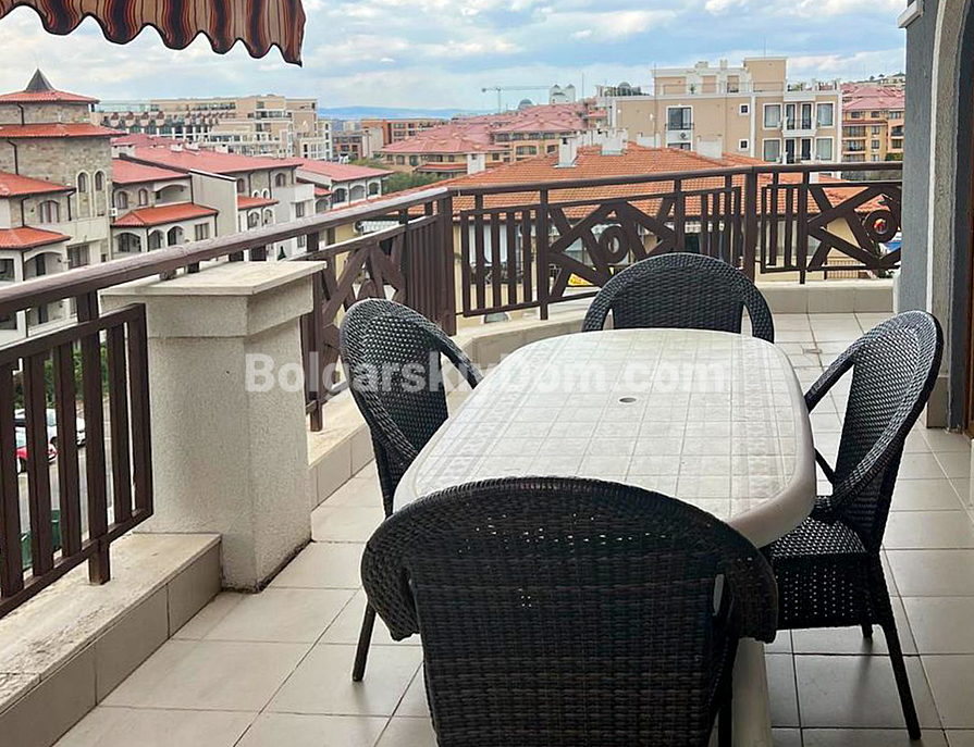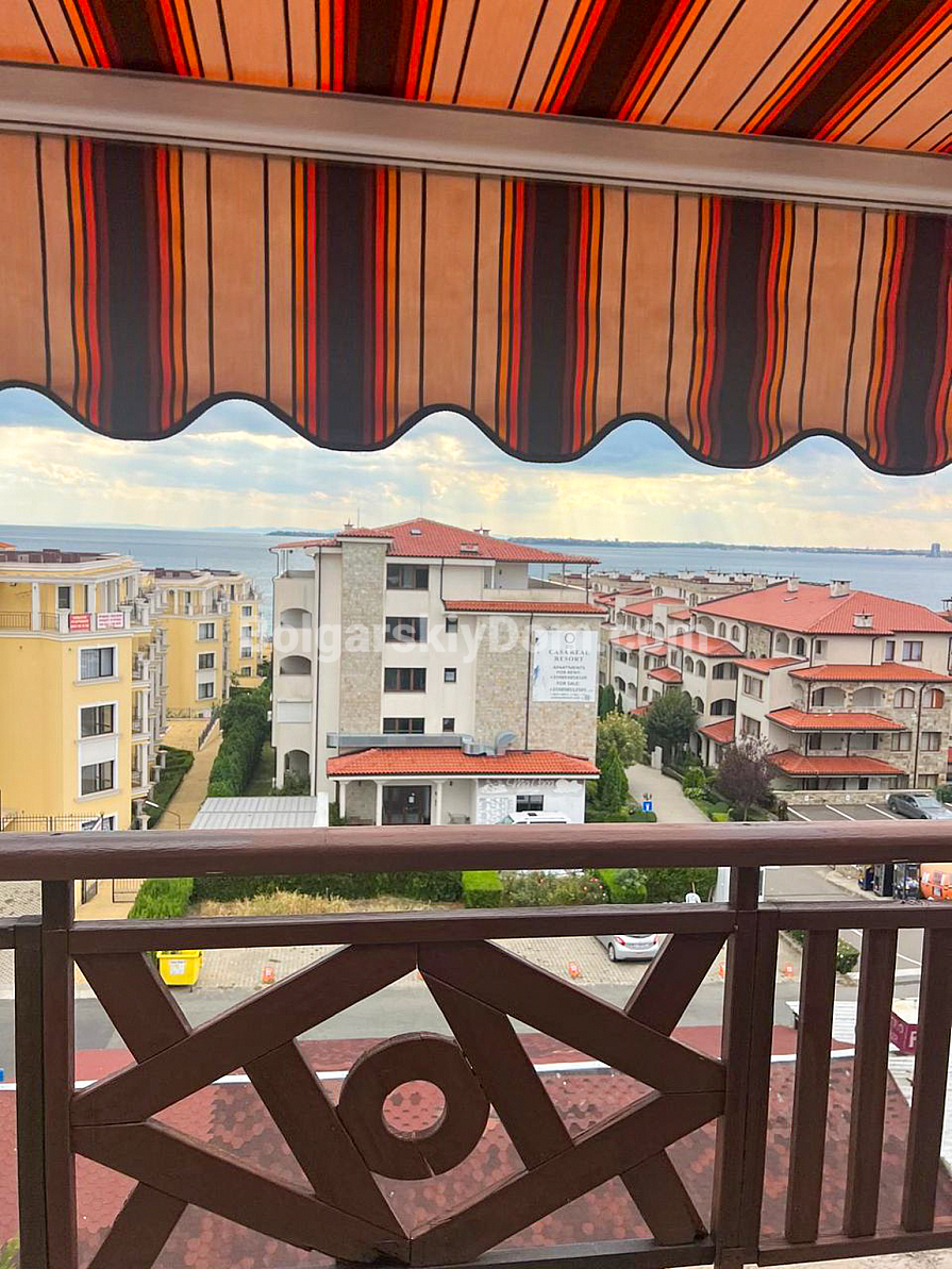 New addition to our catalog of sea-view apartments! A breathtaking view in the most sought-after area — the perfect home for you and your investment! For sale: a spacious one-bedroom apartment with a total area of 99 sq.m. in the Royal Palm complex in Saint Vlas. The apartment is located on the 6th (top) floor and features a cozy, homely interior. It is fully furnished and equipped, including all household and digital appliances. The main highlight is the large terrace with an awning, offering a stunning panoramic sea view.