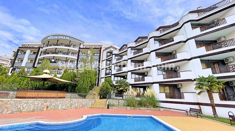 The Royal Palm complex is situated in the prestigious Yurta district of Saint Vlas, just 250 meters from the sea. This location perfectly combines proximity to the beach with the tranquility of a residential area. The complex offers well-maintained housing suitable for both summer holidays and year-round living — a typical feature of properties in Saint Vlas. On-site facilities include a swimming pool and relaxation areas, while the low annual maintenance fee — only 10 euros per sq.m. — makes it economically attractive. The apartment is completely ready for move-in and requires no additional investment. Contact your Bolgarskiy Dom agent today!