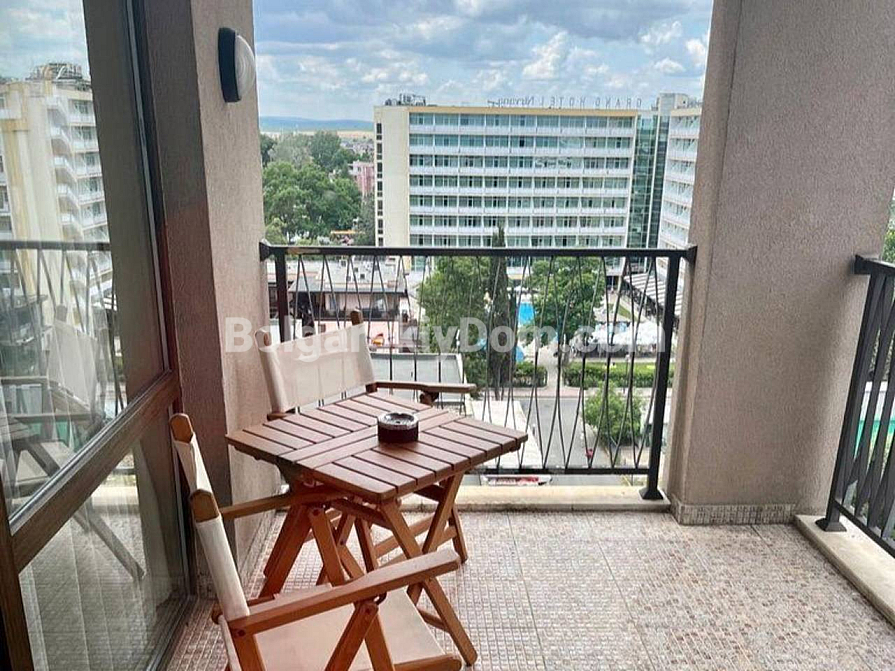 Take the opportunity to purchase a spacious apartment in the very heart of the resort at a reduced price! For sale is a one-bedroom apartment (with 1 bedroom) with a total area of 73.63 sq.m., located in the prestigious Royal Beach Barcelo complex in Sunny Beach. The apartment is situated on the 4th floor and is offered fully furnished and equipped for immediate use, including air conditioning, a full set of kitchen appliances (ceramic hob, oven, microwave, refrigerator), and tableware. The layout includes a bedroom with a double bed, a living room with a sofa bed, a kitchen-dining area, a bathroom with a bathtub, and a spacious balcony overlooking the street. Promotional price – call now!