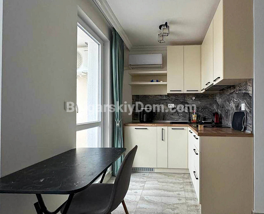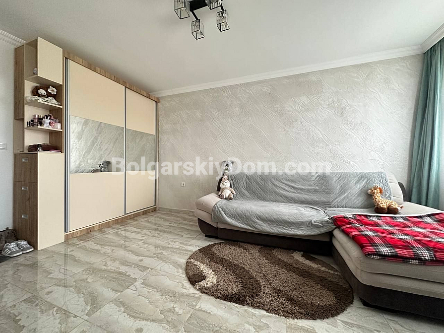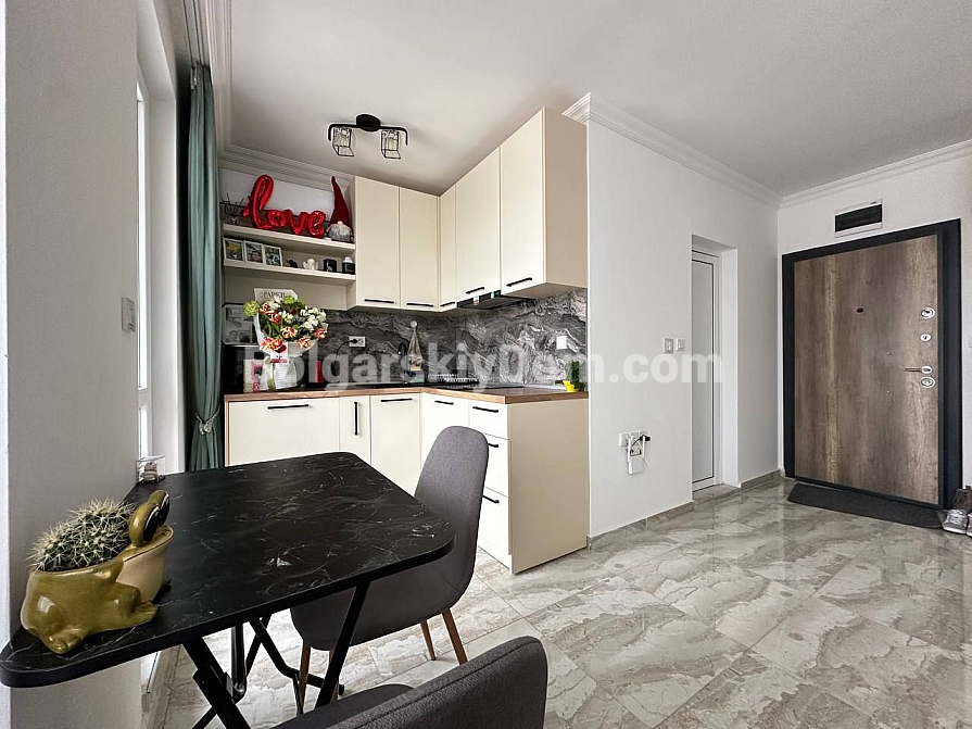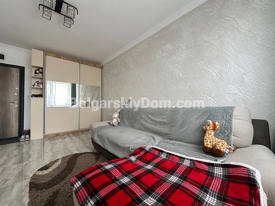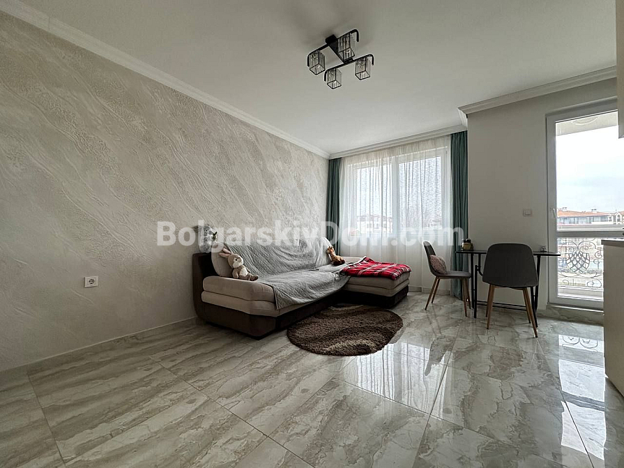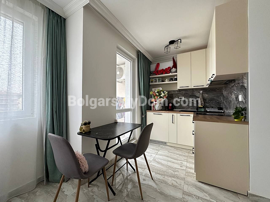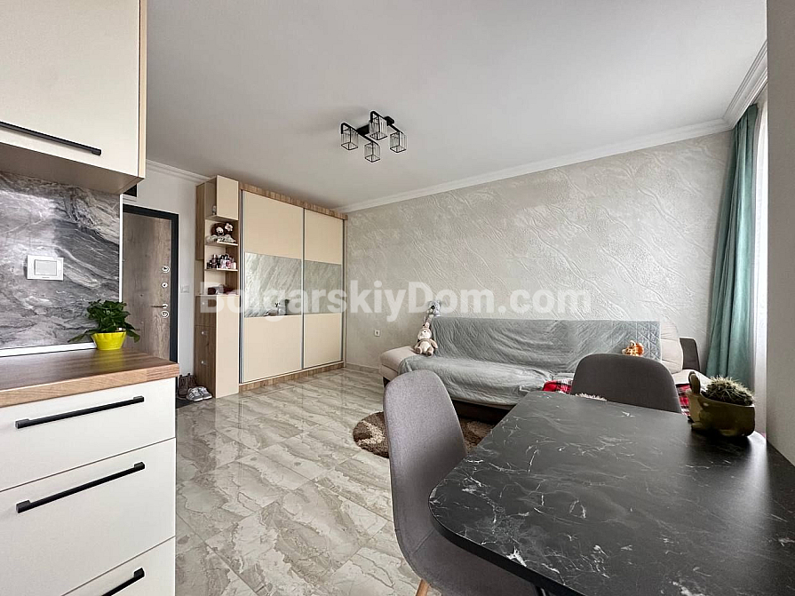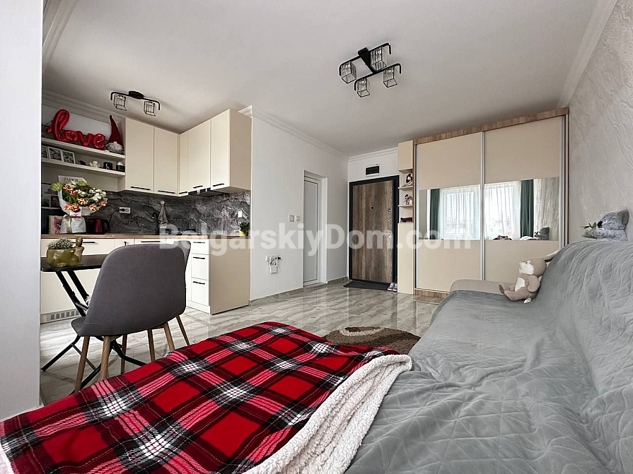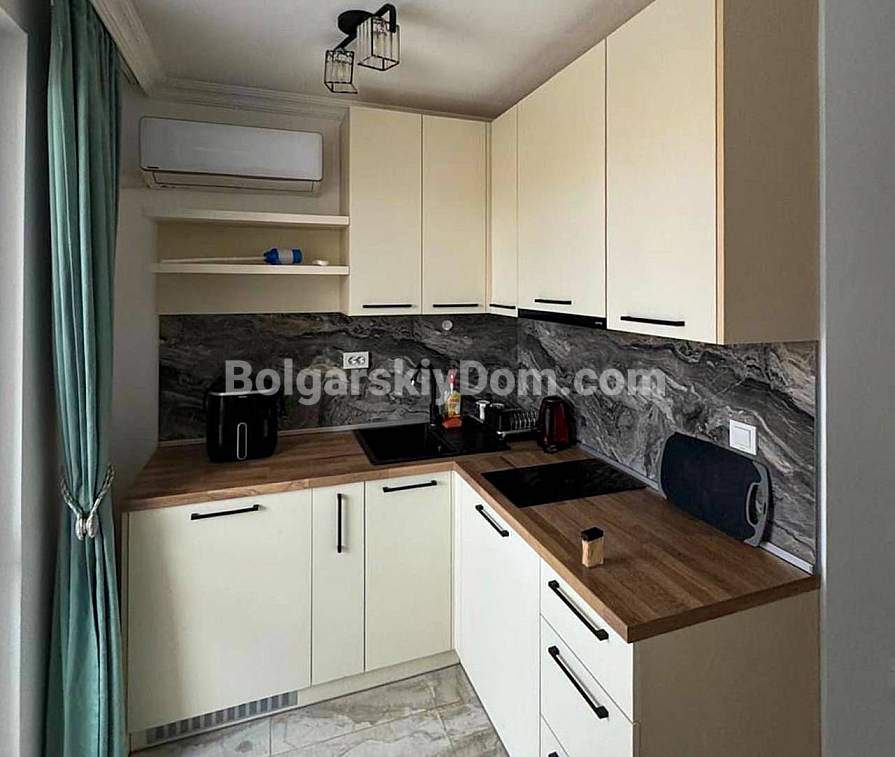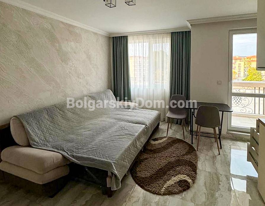 Do you dream of your own corner by the sea? This is an ideal option for living and relaxing! A cozy studio apartment in one of the new complexes in the central part of Sunny Beach has been put on sale! The 42-square-meter studio is located on the fourth floor and is fully ready to move in: bright and spacious layout, modern furniture and appliances, interior thought out to the smallest detail. The kitchen is located in a separate niche. There is a terrace. Come and live!