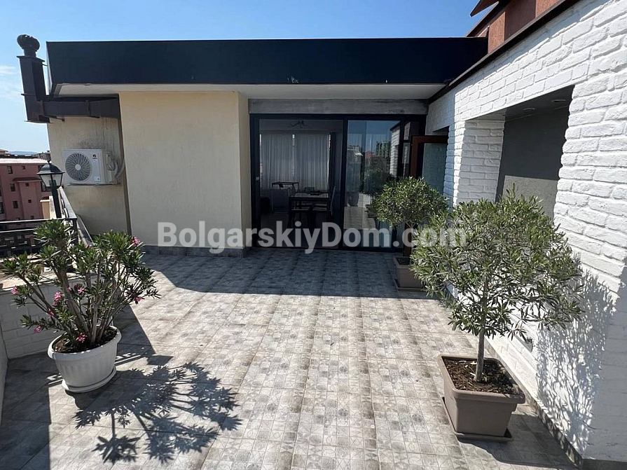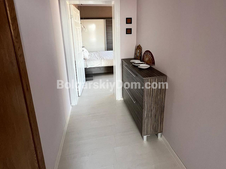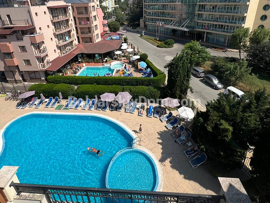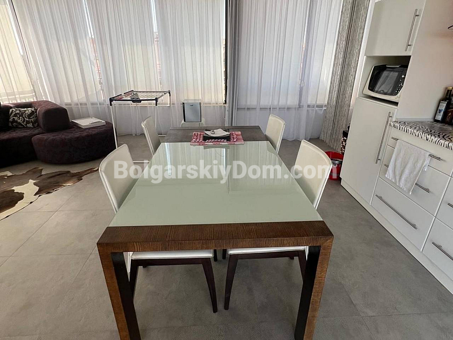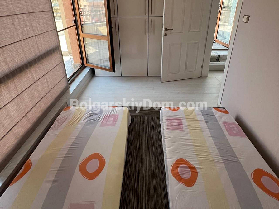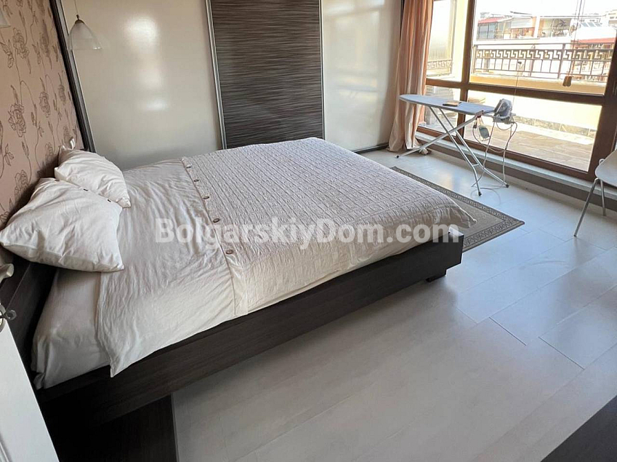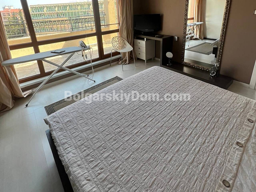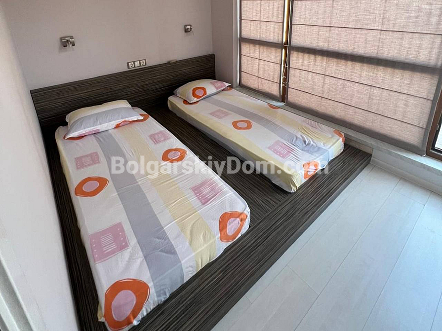 A spacious two-bedroom apartment has been put on sale in a cozy area of Sunny Beach. The apartment is located on the sixth floor and has an impressive area of 120 square meters (60 square meters according to the documents). The layout includes an entrance hall, a bright living room with a kitchen area, two bedrooms, a bathroom with toilet and shower, as well as a huge terrace overlooking the pool. The apartment is fully furnished and equipped with all necessary appliances. Clean, well-groomed and tidy - ready to move in at no extra cost right now. A significant advantage is the possibility of installment payments of up to one year, which makes the purchase more affordable and attractive.