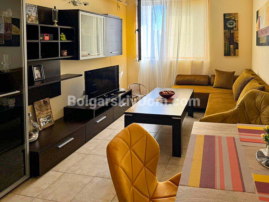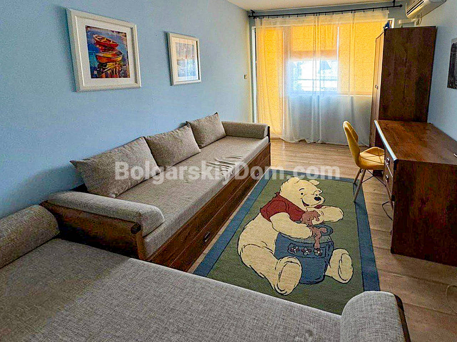 Take note of this excellent offer in the very heart of Sunny Beach! A new listing – a spacious two-bedroom apartment of 64 sq.m. in the Villa Sofia complex, located in the Chaika area. The apartment is on the 5th floor of a six-story building and is sold fully furnished, making it ready for long-term rental or comfortable living. The interior is designed in a convenient, uncluttered style, perfect for life by the sea. The kitchen, bathroom, living room, and bedroom – all are fully equipped, ideal for long-term stays!