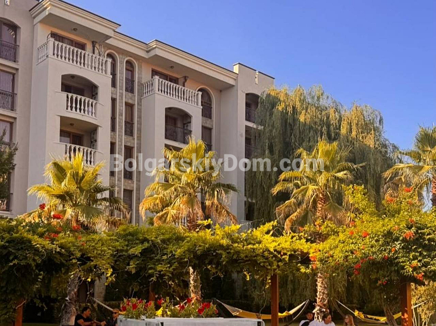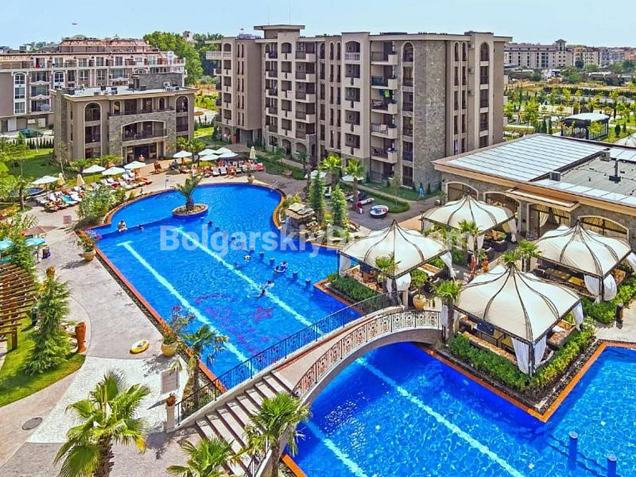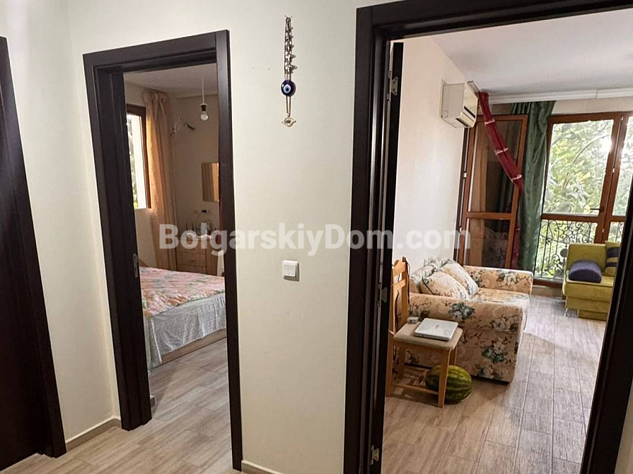 New listing from Bolgarskiy Dom! An exceptionally stylish and functional two-bedroom apartment is waiting for you in the most famous family resort — Sunny Beach, in the Cascadas complex. This property, with a total area of 70 sq.m., is located on the second floor and is ready for immediate move-in. The apartment features a smart layout: a spacious living room combined with a kitchen and dining area, two separate full-sized bedrooms, a bathroom, and a terrace. The main advantage of this property is its view of the quiet park area and green alleys, ensuring peace and privacy away from the resort noise. The apartment is sold fully furnished and equipped with high-quality furniture, all necessary appliances, air conditioning, and kitchen equipment.