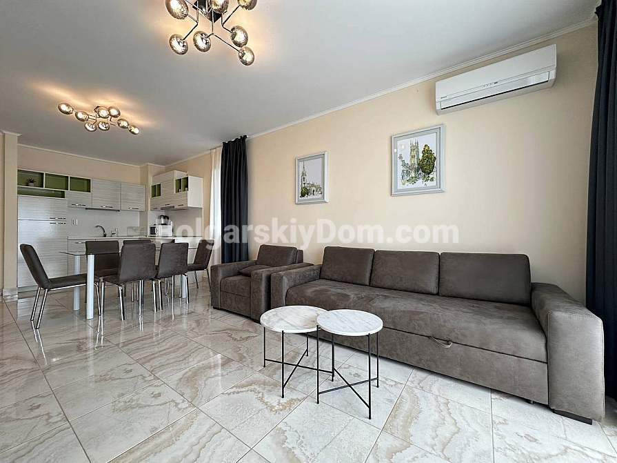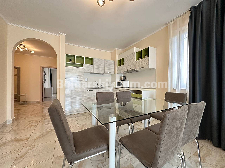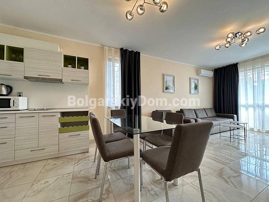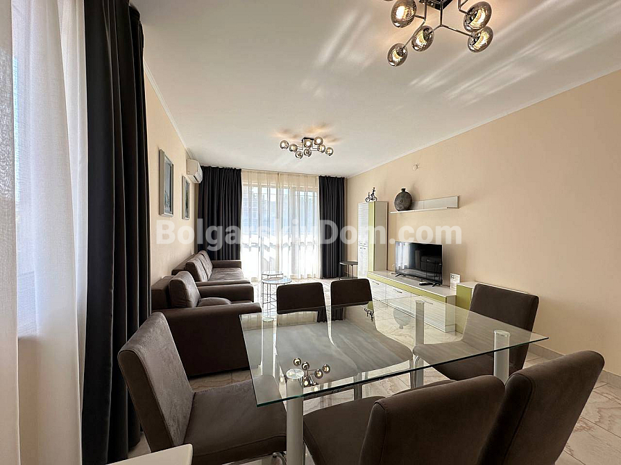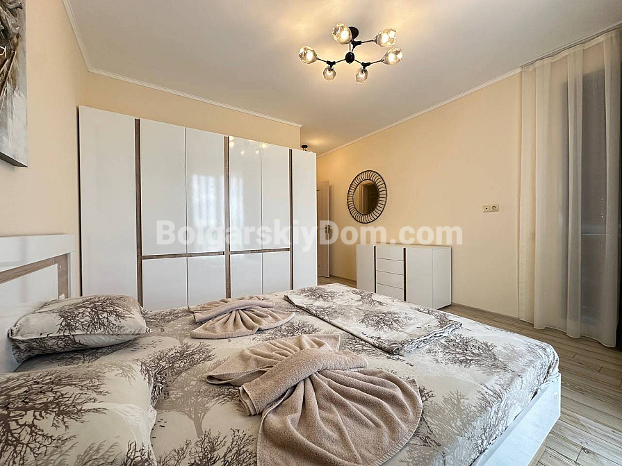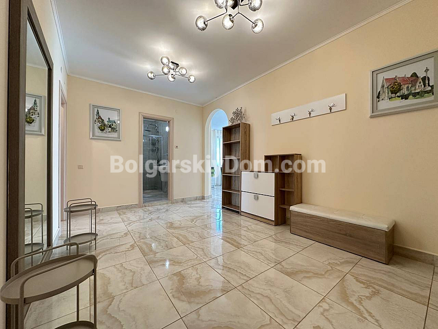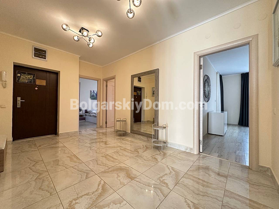 Ready to receive the keys to a designer residence where you don’t have to think about anything but relaxation? Here’s a special hot offer — a luxurious, truly premium apartment in Nessebar! This is a spacious four-room apartment with a total area of 135 sq.m., located in the Poseidon complex, where everything is designed for your utmost comfort. You’re getting a true “all-inclusive” property: the apartment is in perfect condition, sold with high-end designer furniture and modern appliances, while the interior is styled in a trendy, bright Pinterest-inspired format. Inside, you’ll find a functional layout with three full bedrooms, a bright living room with a kitchen, two bathrooms, and a hallway. Adding a special charm — two terraces, one of which overlooks the pool.