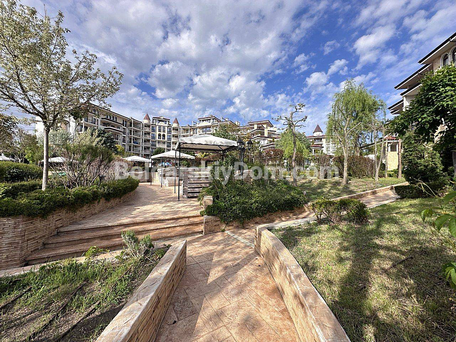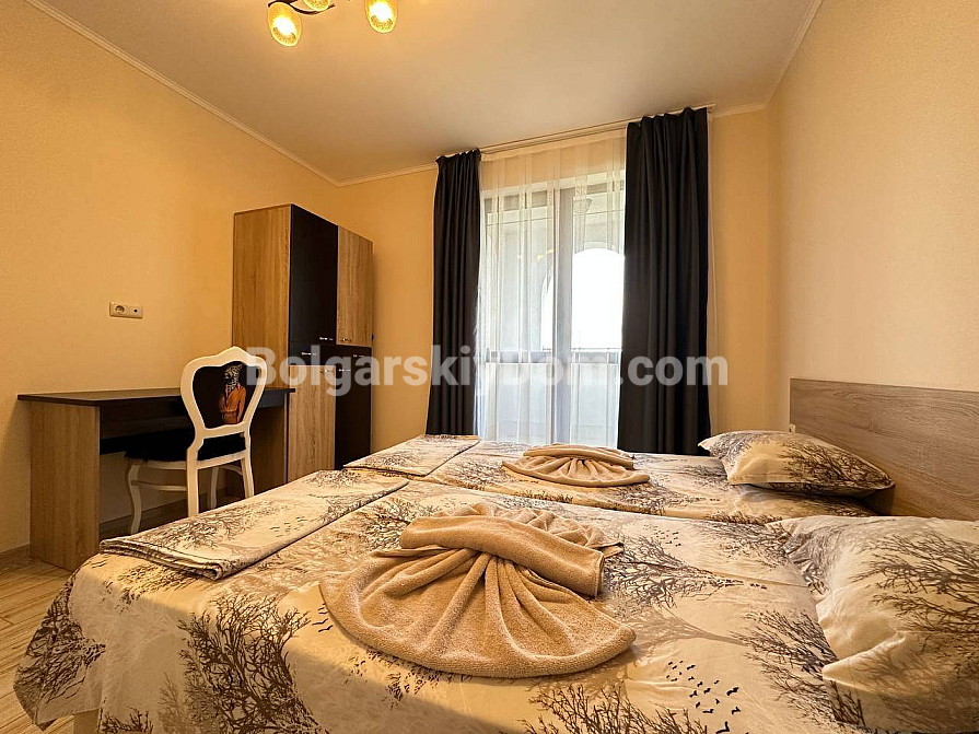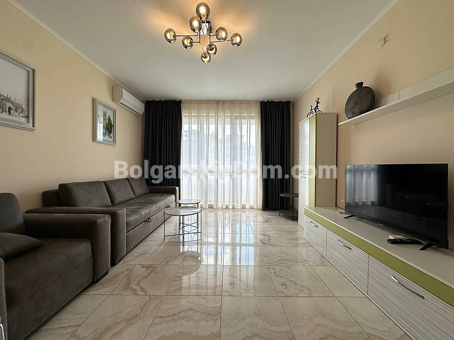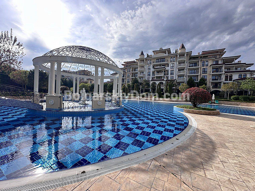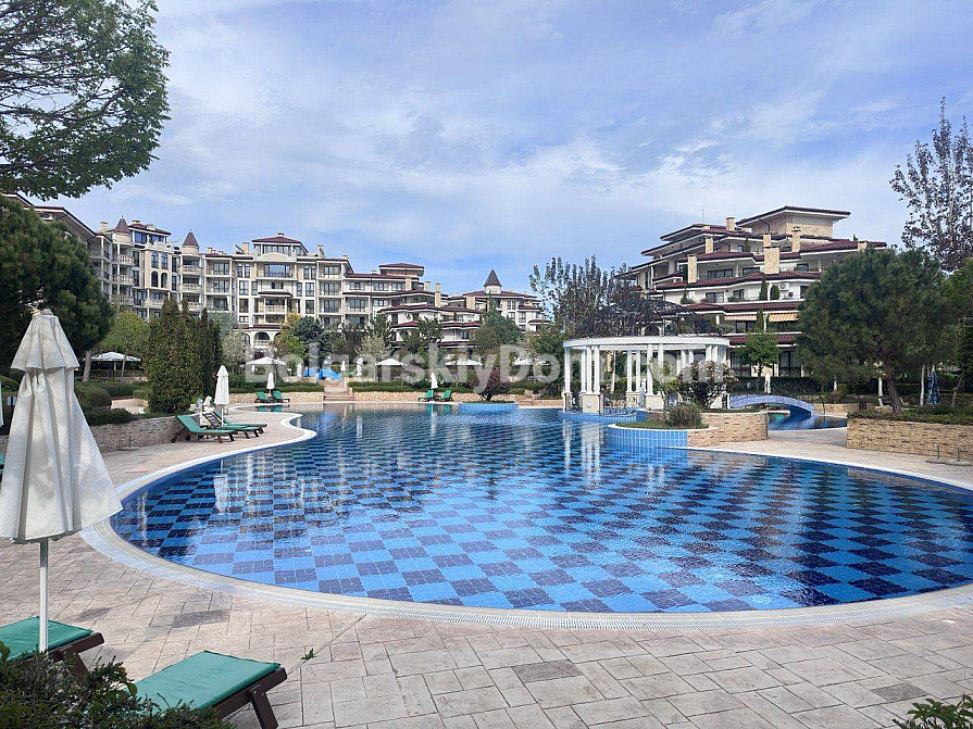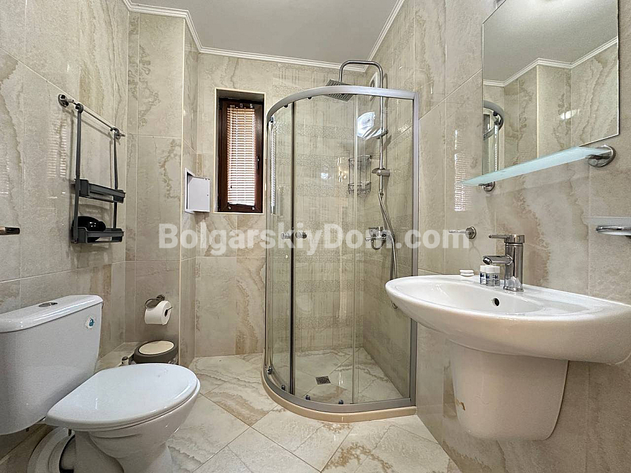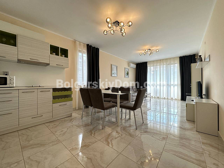 Ready to receive the keys to a designer residence where you don’t have to think about anything but relaxation? Here’s a special hot offer — a luxurious, truly premium apartment in Nessebar! This is a spacious four-room apartment with a total area of 135 sq.m., located in the Poseidon complex, where everything is designed for your utmost comfort. You’re getting a true “all-inclusive” property: the apartment is in perfect condition, sold with high-end designer furniture and modern appliances, while the interior is styled in a trendy, bright Pinterest-inspired format. Inside, you’ll find a functional layout with three full bedrooms, a bright living room with a kitchen, two bathrooms, and a hallway. Adding a special charm — two terraces, one of which overlooks the pool.