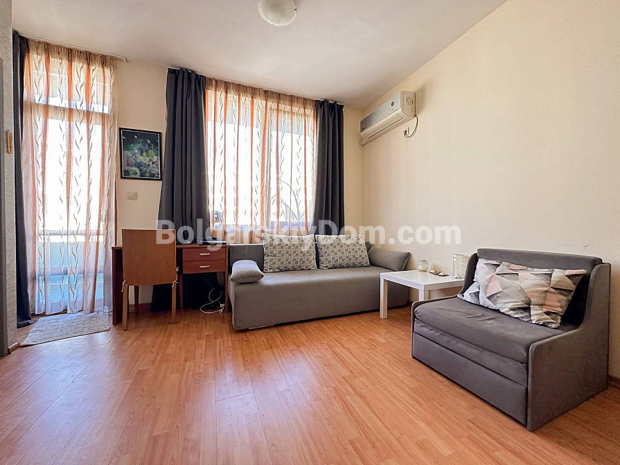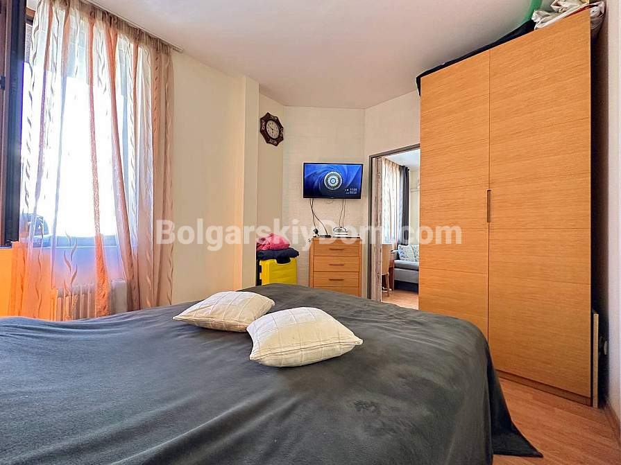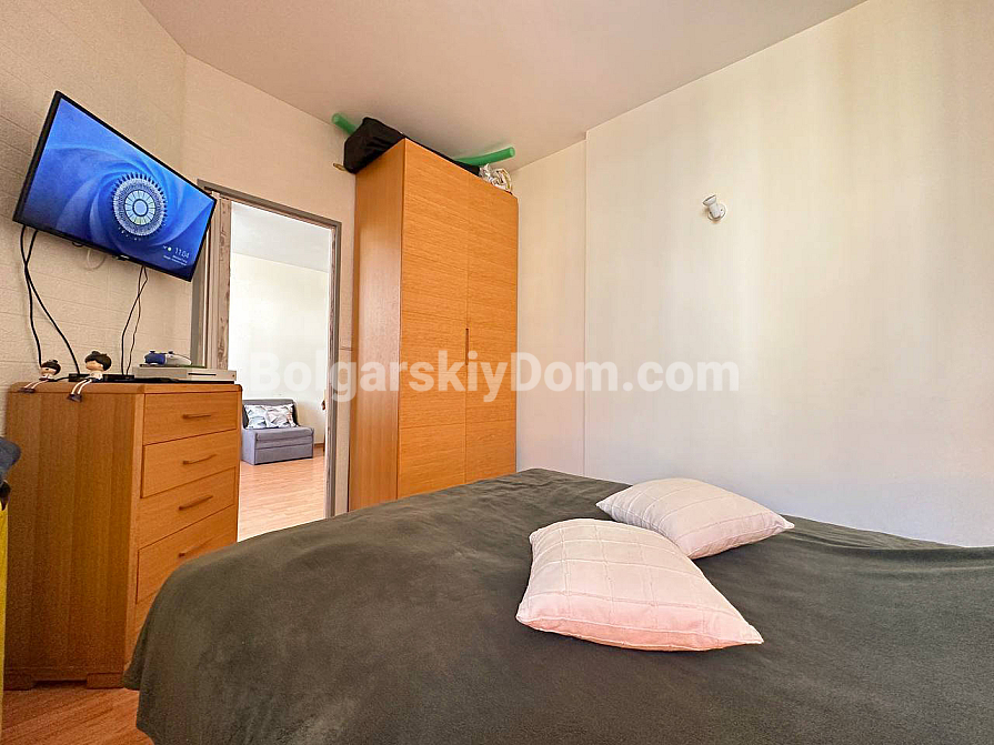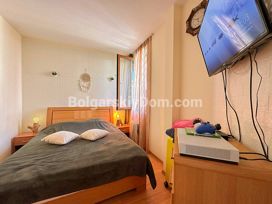 A rare find in Sveti Vlas is a cozy one-bedroom apartment in a complex on the first line of the Paradise Garden! There is simply no apartment with a separate bedroom and an area of 60 square meters in this complex on the market, which means that you have found a truly unique offer. On the 5th floor, you will find a pleasant space where everything is thought out to the smallest detail: all necessary basic furniture and appliances are in good condition. The spacious terrace overlooks the magnificent, well-kept grounds, where greenery, flowers and the sea breeze create a feeling of resort tranquility all year round.