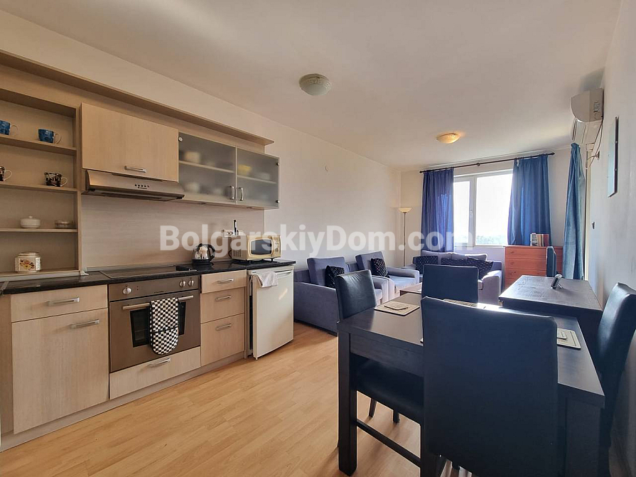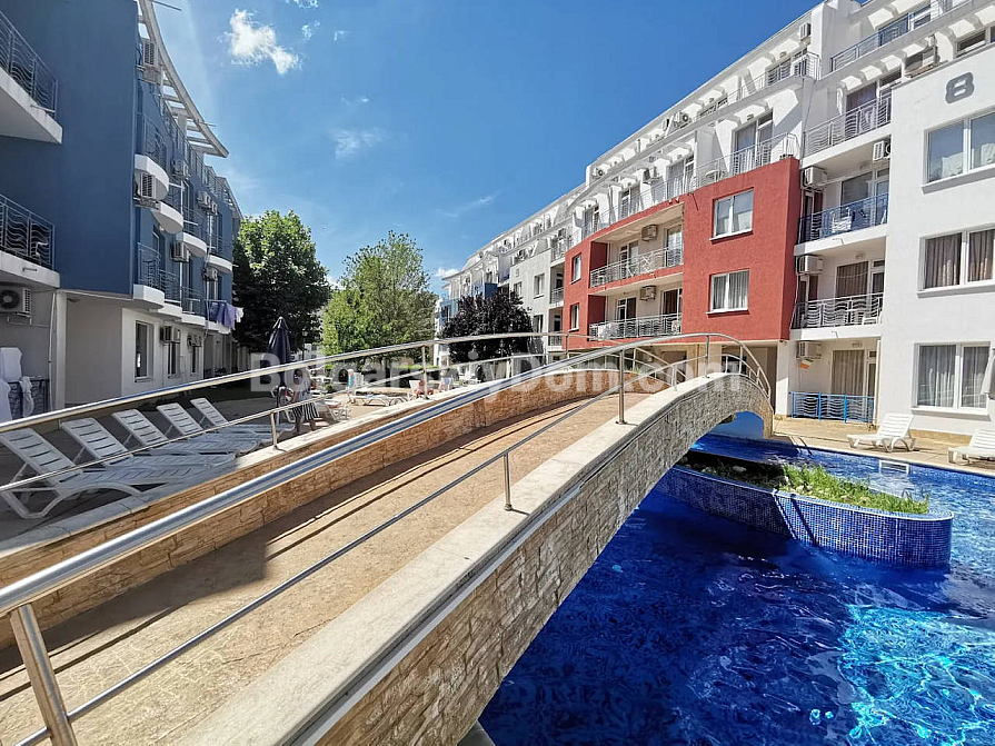 Sunny Day 3 complex enjoys a convenient location — only 900 meters from the sandy beaches and 500 meters from the resort center. The residential complex features a well-maintained green area designed for full relaxation, and offers a large swimming pool with sunbathing zones, a children’s playground, a café, parking, and security. The complex has Act 16, is fully inhabited, and is suitable for year-round living thanks to its professional management company and affordable utility rates. The annual maintenance fee is €580, fixed and not linked to the apartment size.