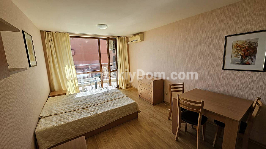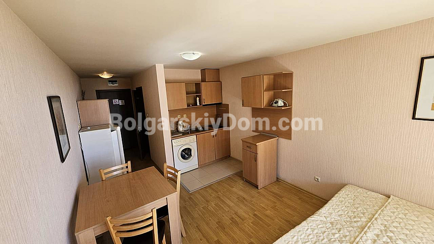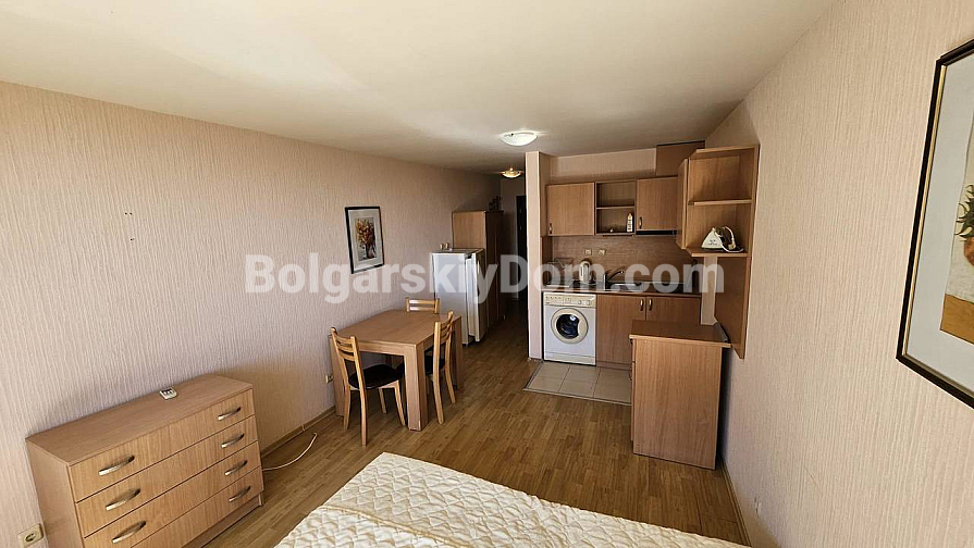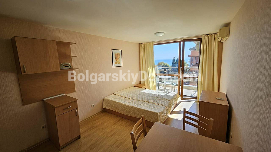 A property with maximum liquidity! Don’t miss this opportunity: a spacious studio on the first line with a stunning sea view! We offer for sale a large 42 sq.m. apartment in the Vigo residential complex in Nessebar. The studio is located on the 4th floor of a building designed for year-round living and equipped with an elevator. The living area consists of a living room with a kitchen, a bathroom with a toilet, and a terrace with a direct sea view. The apartment is sold fully furnished and equipped, completely ready for move-in.