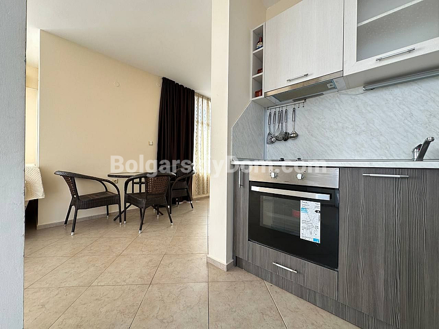 The Pyrop City complex is situated in a quiet area, only 350–500 meters from the beach and 500 meters from the resort center, next to a park and landscaped recreation areas. Residents have access to an outdoor swimming pool with a children’s section, a playground, a gated area with security and video surveillance, and parking. All necessary infrastructure — supermarkets, cafés, restaurants, shopping and entertainment centers — is just a 5-minute walk away. The annual maintenance fee is 12 euros per sq.m., which is a great condition for such a central location in Sunny Beach.