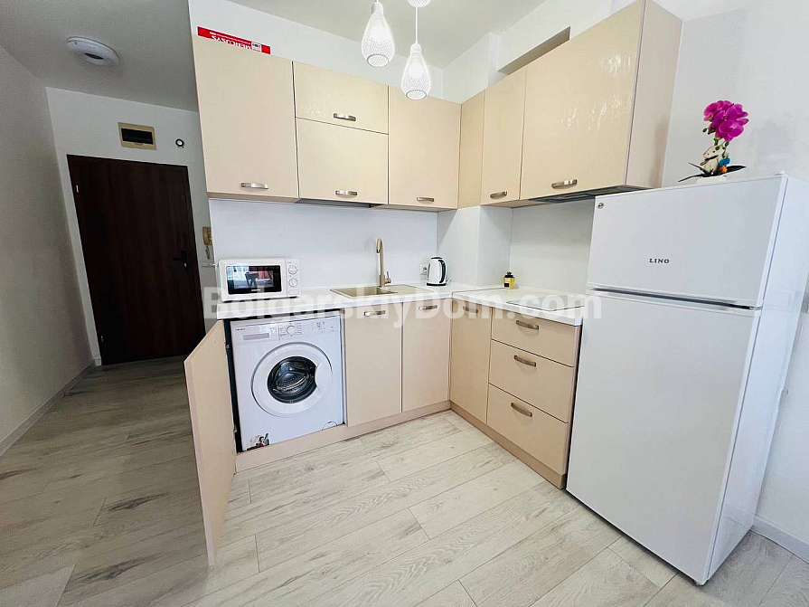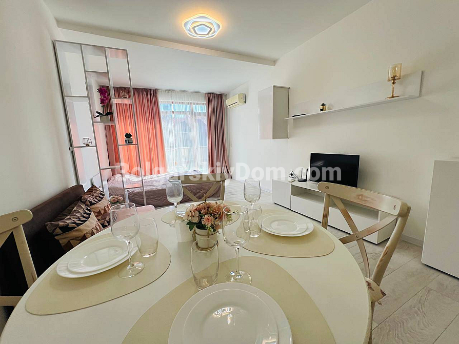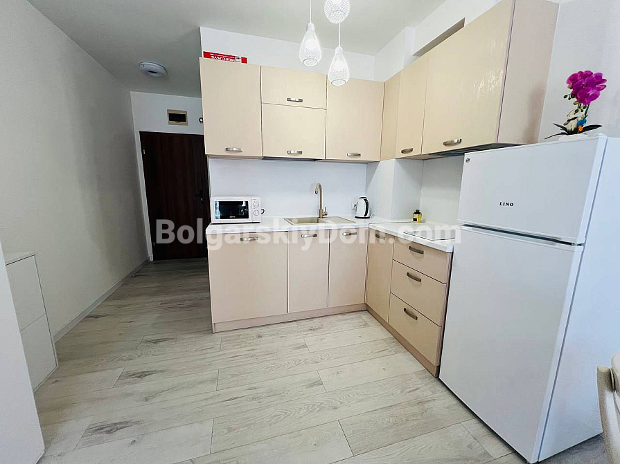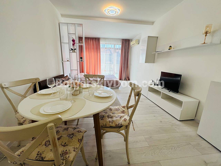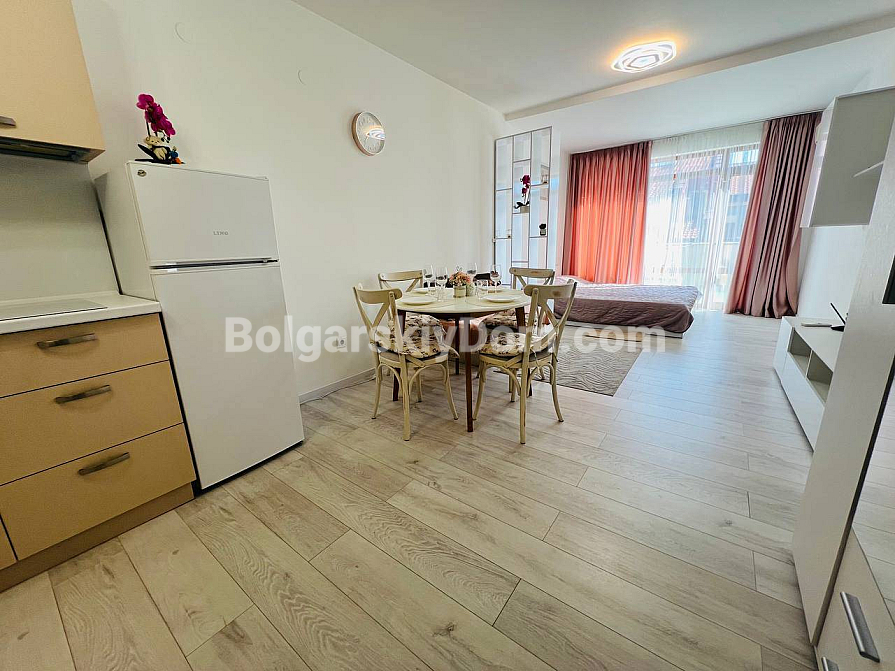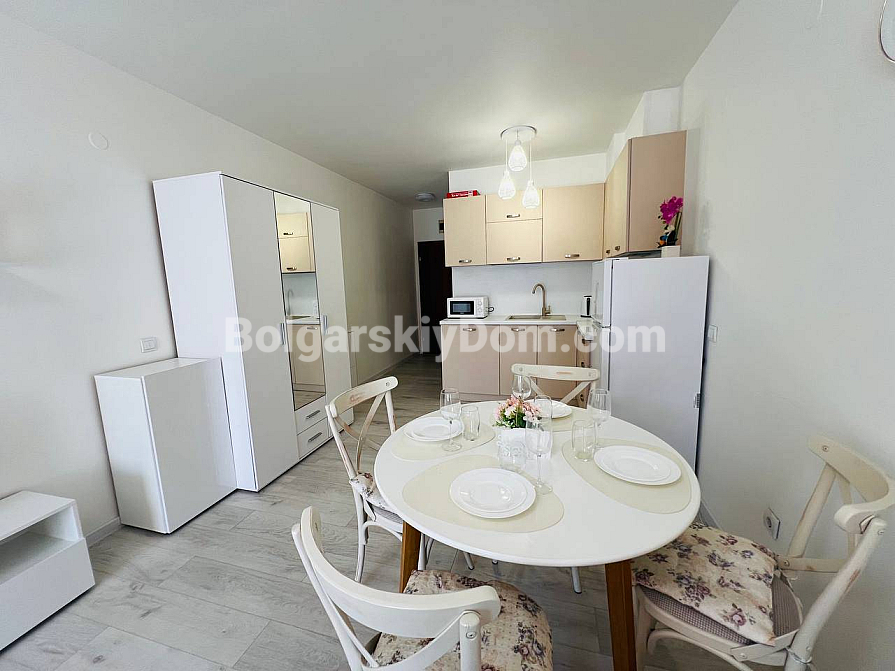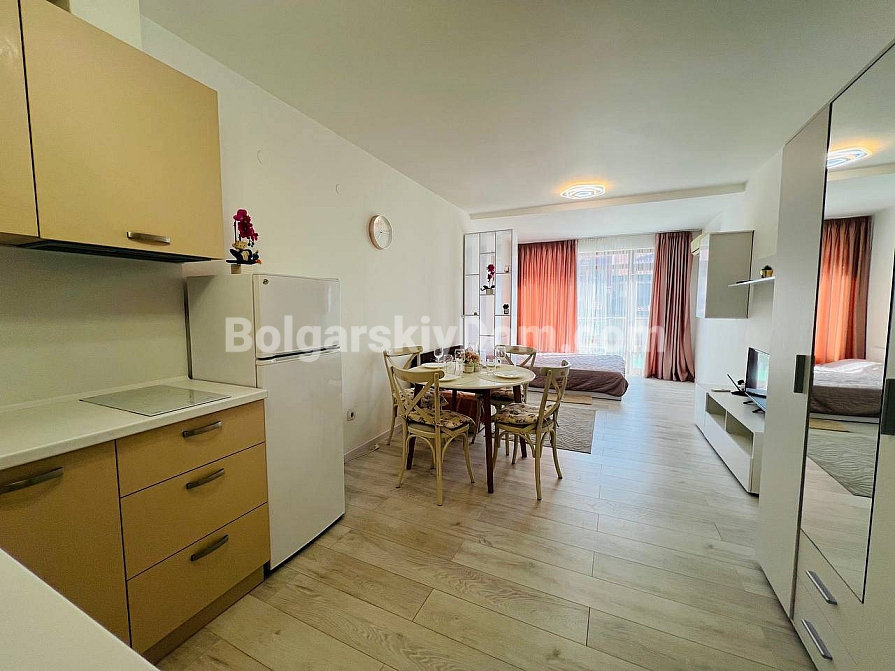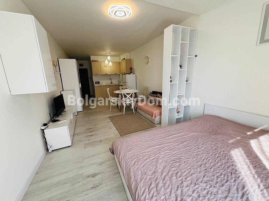 New addition to the Bolgarskiy Dom catalog! Perfect studio in Saint Vlas — renovated and with a pool view! A spacious studio with an area of 54 sq.m. is offered for sale in the Morski Far residential complex. The apartment is located on the 5th floor, in one of the most prestigious areas of the resort — between the famous Yurta and Dinevi districts of Saint Vlas. It’s an ideal option for immediate move-in: the studio is sold after renovation and equipped with brand-new modern furniture. The balcony offers a pleasant view of the pool. The sea is only 200 meters away!