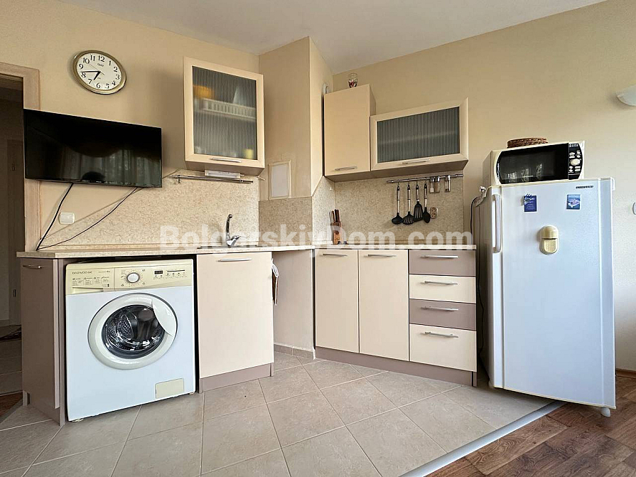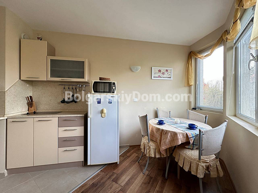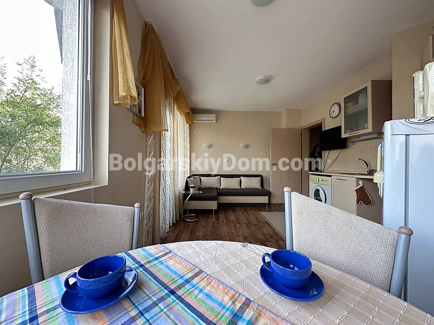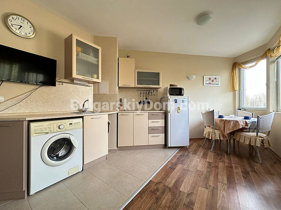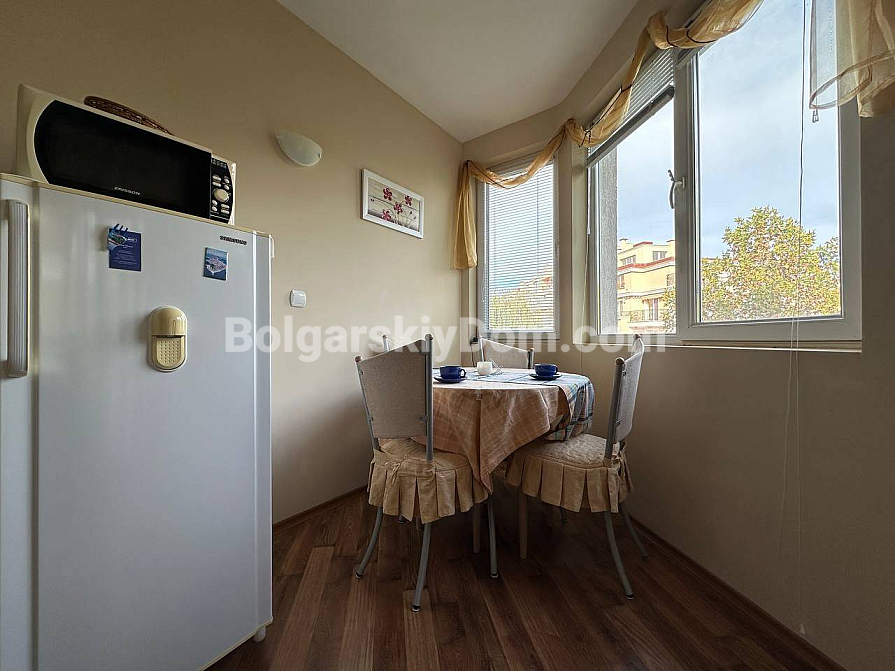 Are you looking for a place by the sea where you want to stay longer, or maybe forever? This one-bedroom apartment with a soul and area of 52 square meters will become your corner of comfort and tranquility on the Bulgarian coast. The apartment is located on the third floor of Laguna 3 complex, in a lively area of Sunny Beach, but away from the bustling tourist streets. Comfort and order reign here: clean, well-maintained housing that does not require any investments. The apartment has all the necessary furniture and appliances in excellent condition — everything is selected with love and attention to detail. The balcony overlooking the green area is an ideal place for a morning coffee or an evening glass of wine.