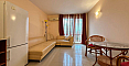 This one-bedroom apartment in Pomorie with an area of 59 square meters is an ideal option for those who are looking for housing on the Bulgarian coast with an urban rhythm and all the amenities at hand. The apartment is located on the fifth floor of a six-storey apartment building with an elevator, which is convenient for both living and renting. Thanks to the two-sided flap, there is always plenty of light and air in the apartment. Two balconies — one open for sunny breakfasts, the second closed — a cozy place to relax. The apartment has basic furniture and appliances, everything you need for a comfortable start. If desired, it is easy to update the interior — a small cosmetic repair will make the space truly yours.