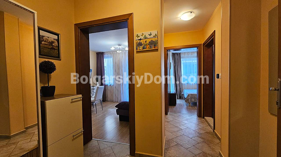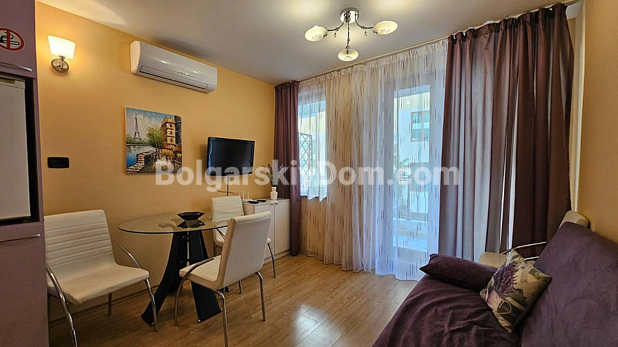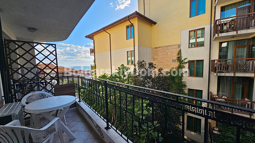 Luxury offer from Bolgarskiy Dom agency! A one-bedroom apartment on the first line with a side sea view! We present a property with the highest rating: a two-bedroom apartment with an area of 53.2 sq.m. in the magnificent SPA complex “Garden of Eden” in Saint Vlas. The apartment is located on the second floor of a building with an elevator. The layout includes an entrance hall, a living room with a well-planned kitchen area, a separate bedroom, and a bathroom. The apartment is fully furnished and equipped with household appliances, has Act 16, and is connected to low utility tariffs, ensuring comfortable year-round living. The interior is elegant and classic, making it equally suitable for both business purposes and personal residence.