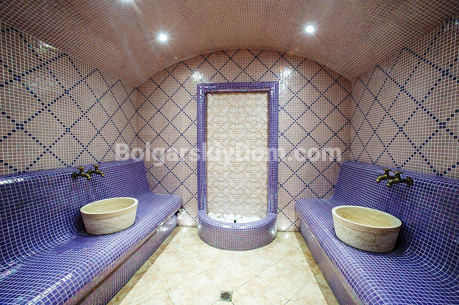 The boutique complex Izida Palace 2 is located in a quiet and prestigious part of Sunny Beach, only a 10–15-minute easy walk from the beach. The main advantage of the complex is its rich and luxurious infrastructure, which includes two outdoor pools, an elegant garden with a fountain, and a spacious barbecue area. Residents also have access to a magnificent SPA center with a Finnish sauna with Himalayan salt, an infrared sauna, a steam bath, and an indoor pool. Use of the SPA area is included in the annual maintenance fee during certain hours. The complex is situated near a water park, and for sports enthusiasts, there is a football field and tennis court nearby. The large MM supermarket is located just 500 meters away.