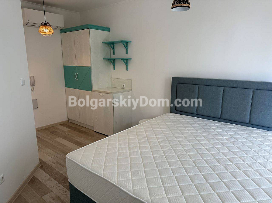 Now available in the Bolgarskiy Dom catalog — an elegant studio in the boutique complex Izida Palace 2, an ideal choice for those who appreciate refined comfort and year-round living. This apartment with a total area of 30.76 sq.m., located on the second floor, comes with stylish furnishings that allow you to immediately enjoy your stay or start renting it out. The studio is cleverly designed, featuring a living area combined with a sleeping zone, a fully equipped bathroom, and pleasant views of the green tennis court from the windows. Despite its compact size, the apartment is equipped with everything necessary — from a refrigerator and TV to an air conditioner.