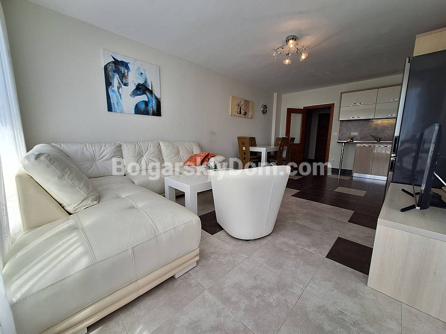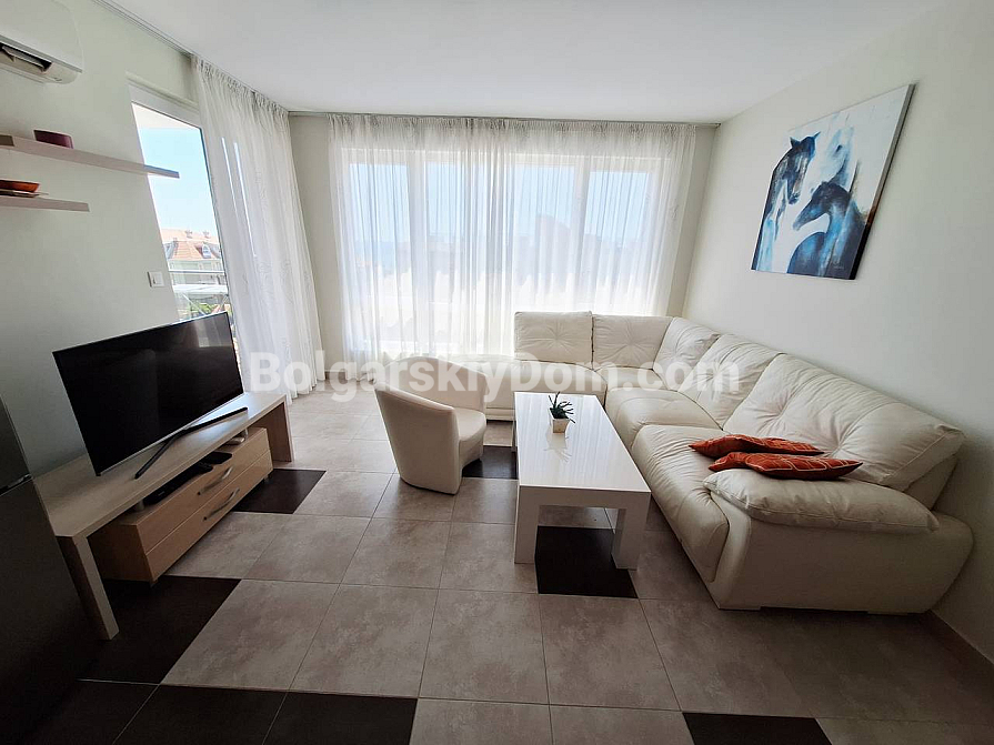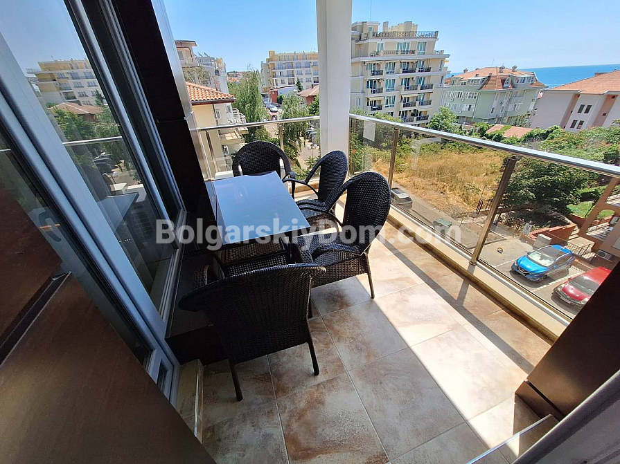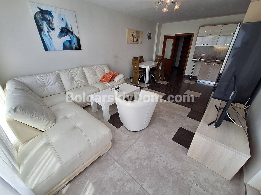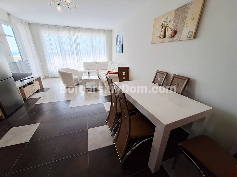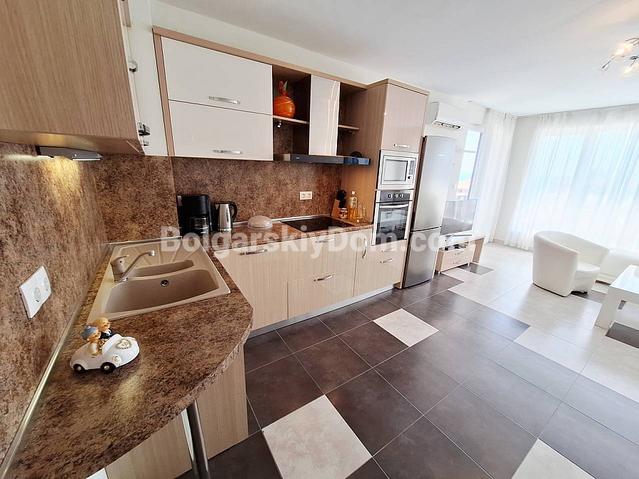 Imagine — a morning in Saint Vlas, a cup of coffee on the balcony, and the endless sea stretching before you! We offer exactly this kind of lifestyle in a spacious two-bedroom apartment waiting for its new owner in the very heart of the resort! This is an exclusive offer — 108 sq.m. of pure comfort on the fourth floor of an elite residential complex with an elevator. The apartment is sold with brand-new furniture and household appliances. You just move in and enjoy! The layout is simply perfect: an entrance hall, a spacious living room with access to a balcony overlooking the sea, two cozy bedrooms, and a second balcony offering a rare combination — views of both the sea and the picturesque green mountains. And best of all, you’ll never have to worry about parking again — the price includes a private parking space (12.5 sq.m.) right next to the building entrance.