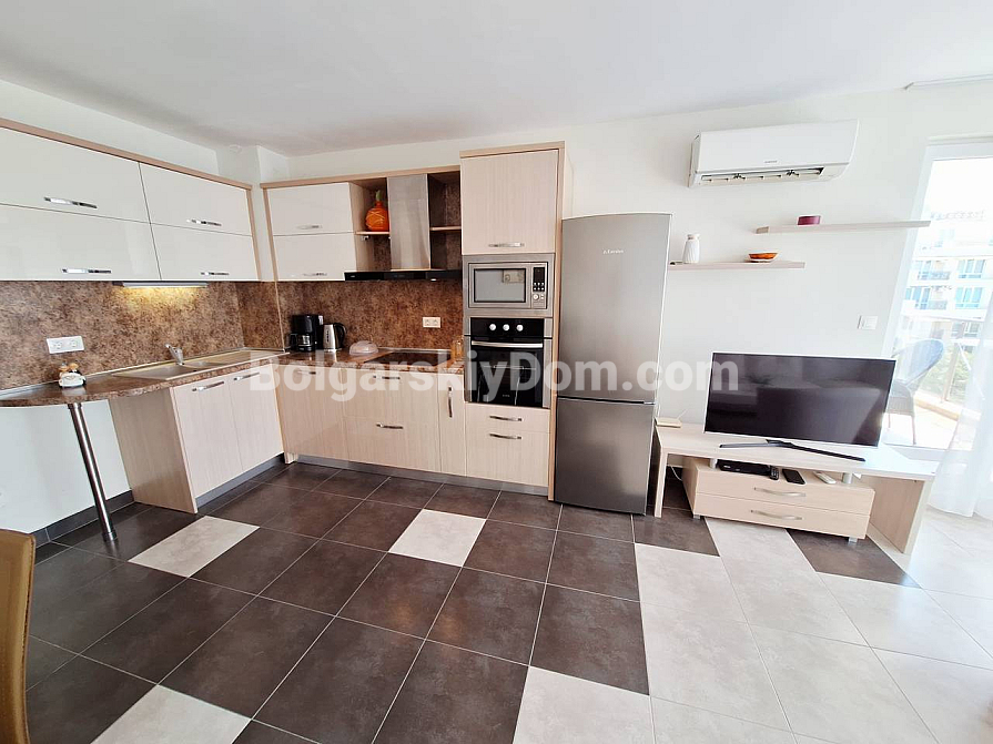 The location is simply stunning! Just 300 meters from a magnificent beach and the famous Marina Dinevi yacht port. All urban amenities — supermarkets, shops, bakeries, and bus stops — are just steps away. The complex itself is a model of modern architecture and aristocratic style. Its main highlight is the rooftop relaxation area, featuring a swimming pool and a panoramic terrace with breathtaking views of the coastline and the mountains. The complex has been commissioned (Act 16) and is suitable not only for summer holidays but also for comfortable year-round living with standard residential utility rates.