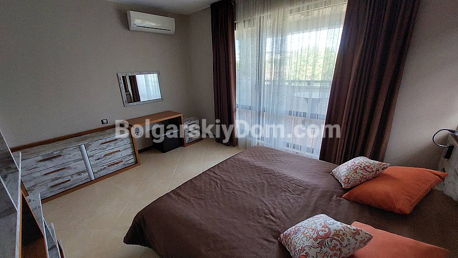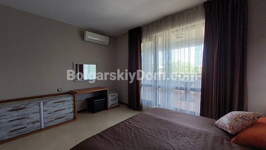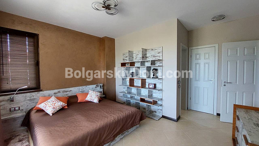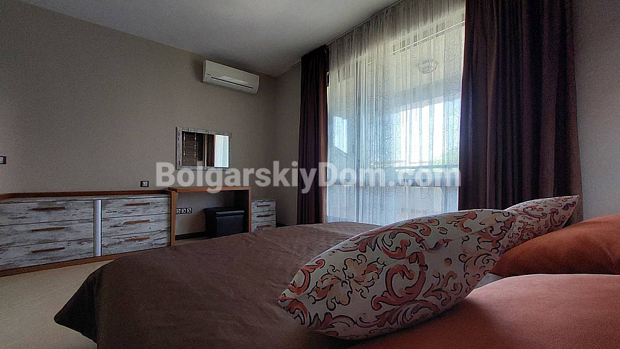 Top new offer of the season! We present to you a truly stylish and spacious two-bedroom apartment in the elite Oasis complex, located on the shore of one of the most beautiful bays of the Southern Black Sea coast. This property, with an area of 137 sq.m., is situated on the fourth floor and designed in a modern classic style — elegant and refined. The layout includes a bright living room combined with a kitchen, two cozy bedrooms, and two bathrooms. A special highlight — one of the bathrooms is directly connected to the master bedroom. The apartment is fully furnished and ready for immediate move-in. Two terraces offer panoramic views of the picturesque forest.