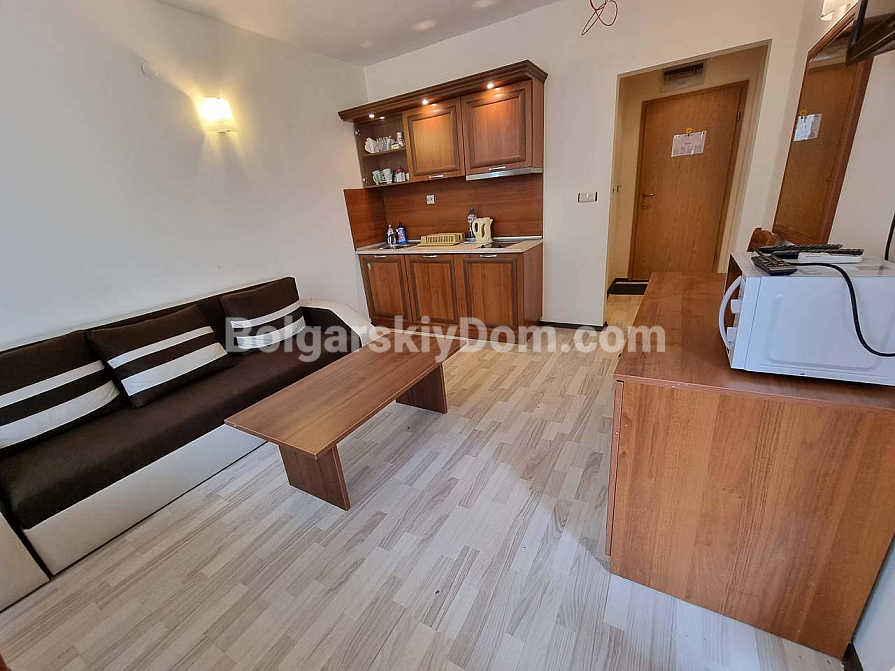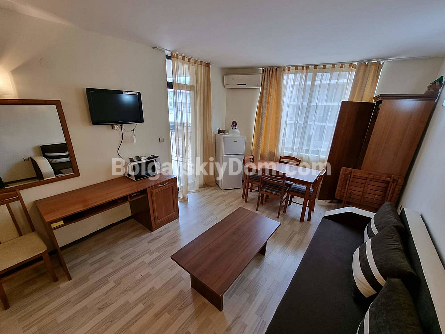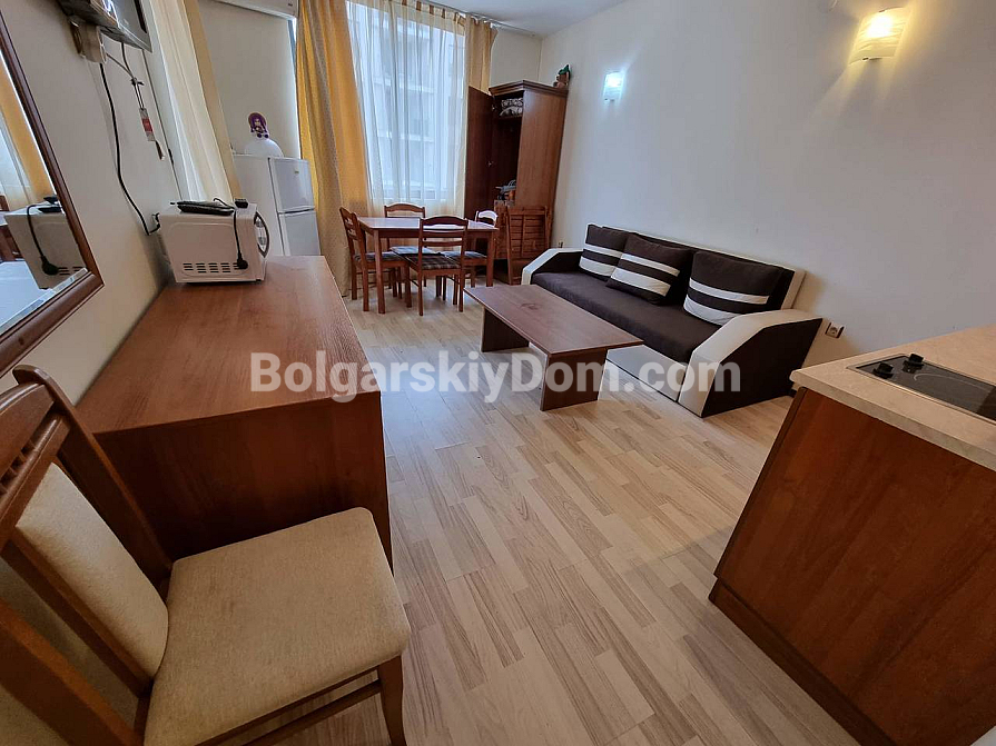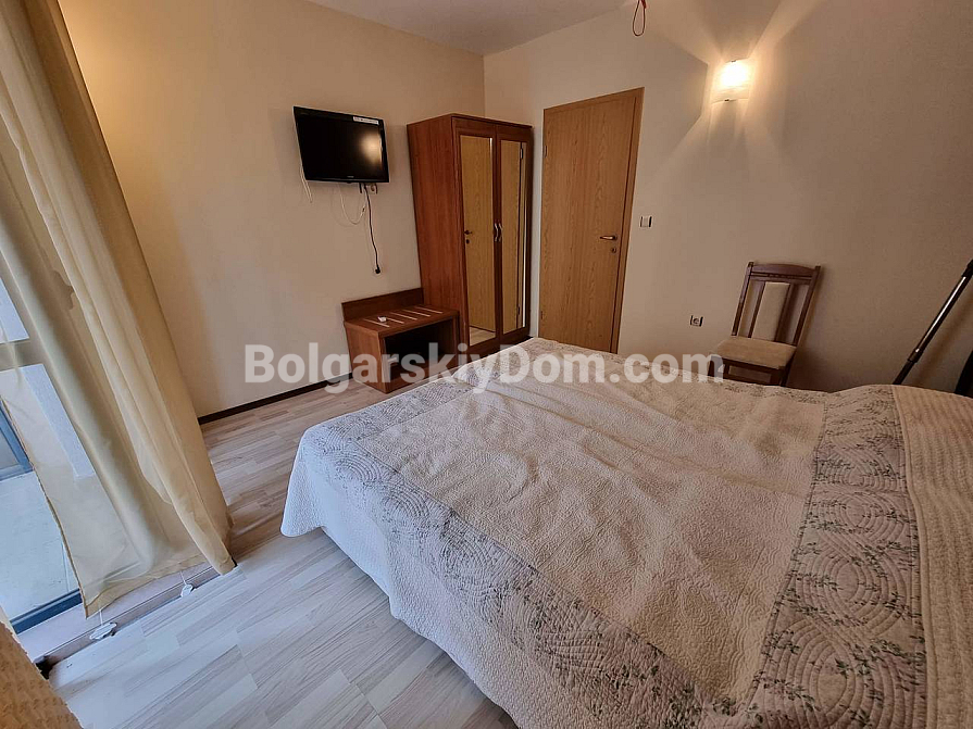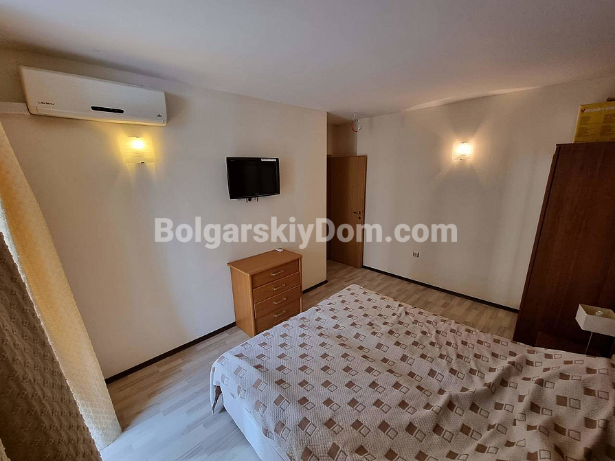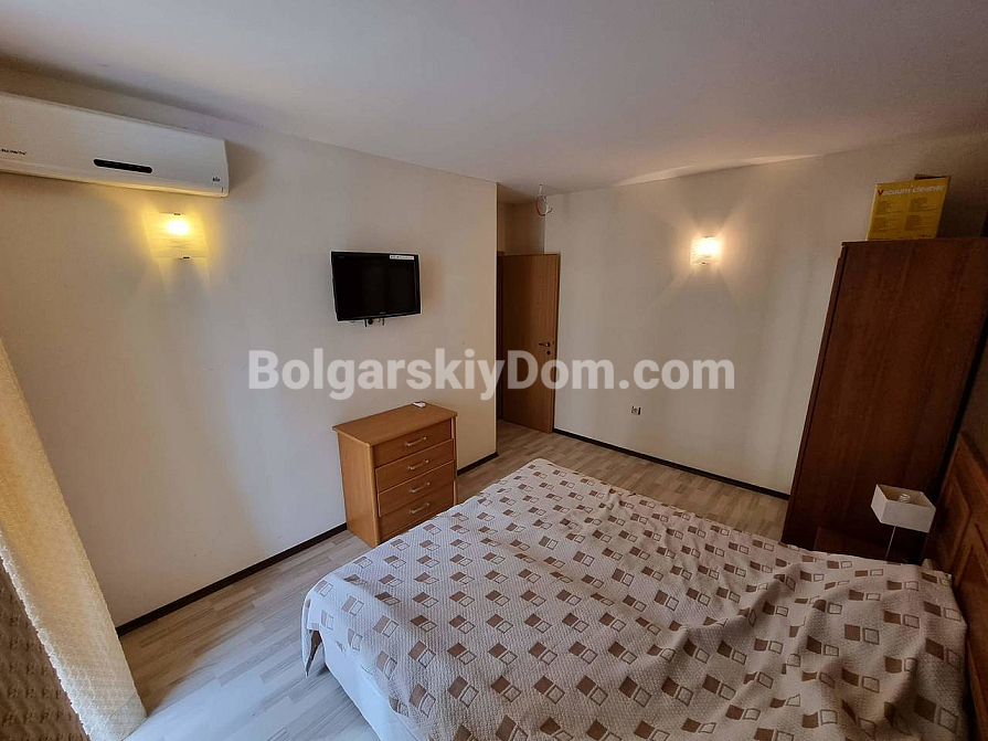 A new listing in our company’s catalog! We are pleased to offer a bright and well-maintained one-bedroom apartment in the Avalon complex in Sunny Beach, whose main advantage is its spacious area of 80 sq.m. at an attractive price! The apartment is located on the first floor of a six-story building, which means you have quick access to the pool and the surrounding territory (an important advantage for families with children or for those of older age). The layout includes a separate bedroom, a living room combined with a kitchen, and a balcony with a pleasant view of the complex pool. The apartment is decorated in light, warm tones and is sold fully furnished and equipped with all household appliances — from a stove and microwave to two air conditioners and televisions. This property is suitable both for comfortable personal living and for generating high rental income.