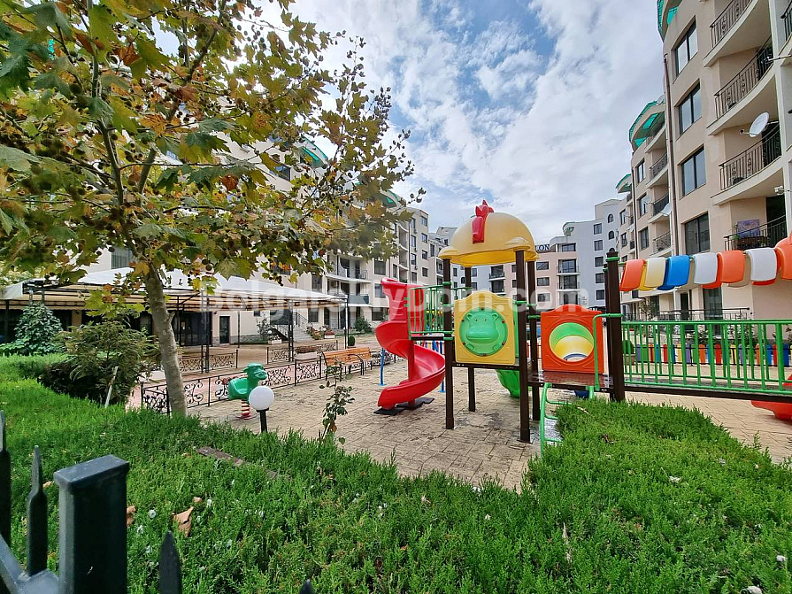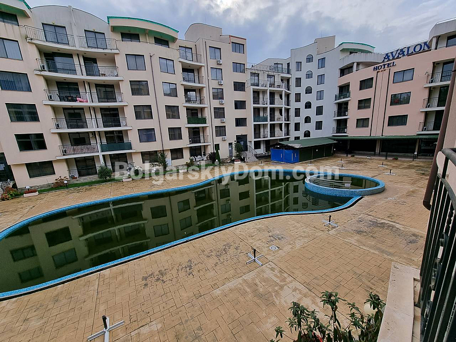 The Avalon residential complex is located in a popular and well-developed part of Sunny Beach, just 550 meters from the sea. The complex features a large outdoor pool, well-kept relaxation areas with sun loungers, and landscaped green grounds. Thanks to its location, you will always have quick access to infrastructure: a large Perla supermarket and many cafes and restaurants are located nearby. The annual maintenance fee is 640 euros, which is an acceptable rate for a complex with such developed internal infrastructure in Sunny Beach.