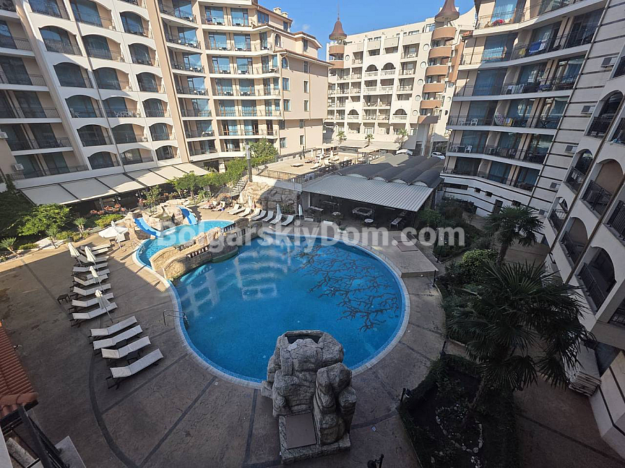 The Carolina complex is located in the southern part of Sunny Beach, where the noise fades and the true resort atmosphere begins, with quick access to the historic town of Nessebar. The infrastructure of the complex is tailored for relaxation: there are two restaurants, a bar, a large cascade pool, and a spa center with a sauna and jacuzzi. You will live within walking distance of the beach and close to key entertainment areas: nearby you will find the Action Aquapark, numerous cafes, shops, and a medical center. Security and a convenient open parking area ensure maximum comfort and safety. The maintenance fee is 12 euros, and the sea is just 200 meters away.