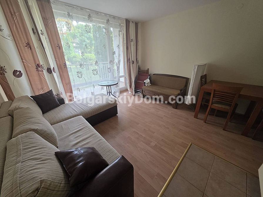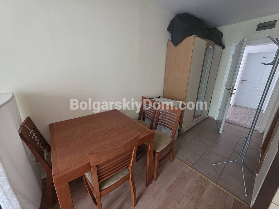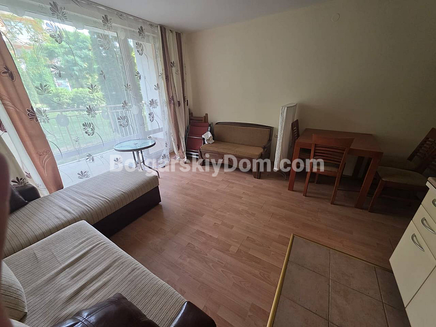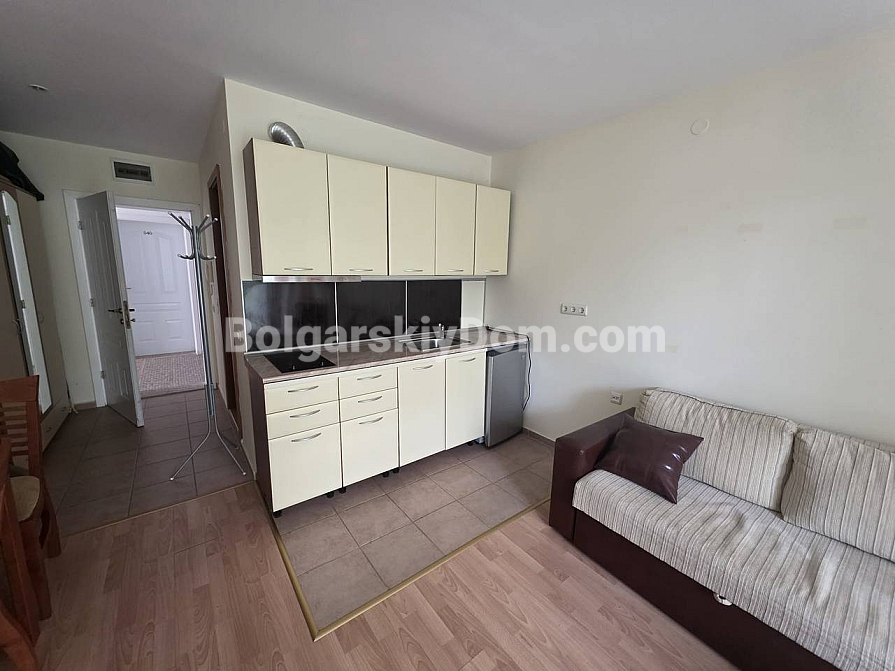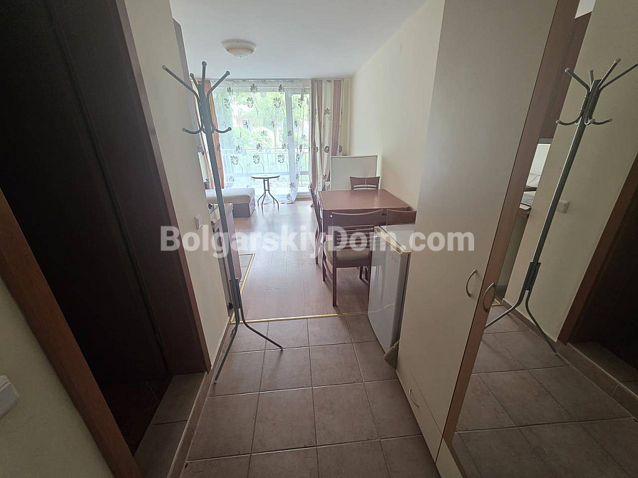 A new offer with high potential for any of your goals! We present to you a cozy studio with a view of greenery at an attractive price in the famous Crown Fort Club complex, located in the picturesque and prestigious area between Saint Vlas and the resort of Elenite. This apartment of 35 sq.m. is situated on a high first floor, which provides convenient access to the infrastructure of the complex while maintaining privacy. The apartment is sold fully furnished, meaning it is completely ready for living or immediate rental. The layout includes an entrance hall, a functional living room with a kitchen, a bathroom with a shower and toilet, as well as a terrace offering a pleasant view of the green areas of the complex. The presence of Act 16 confirms the reliability and legal status of the property.