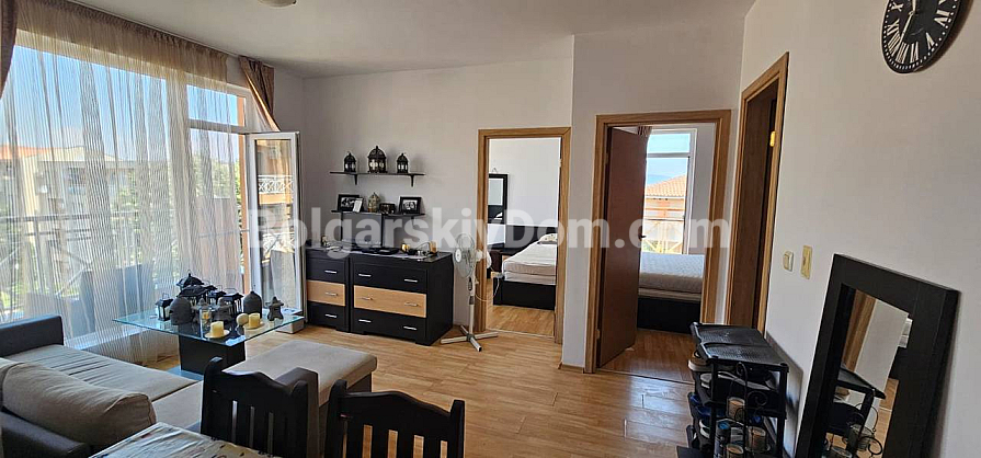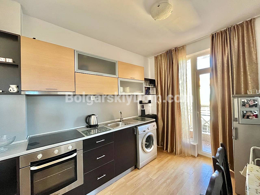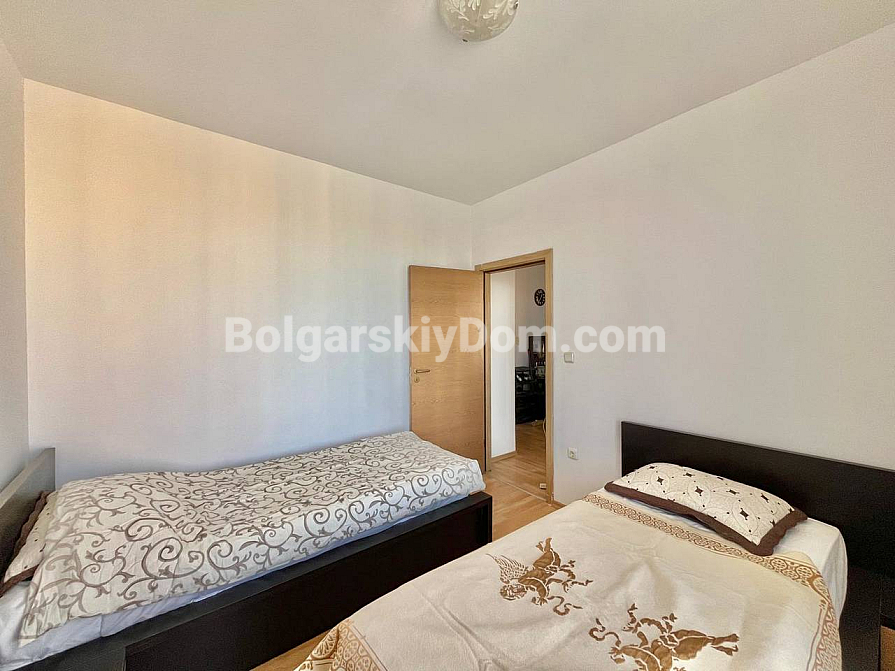 Top offer at a very attractive price! Take a look at this spacious two-bedroom apartment with a large terrace at an excellent price in the popular Sunny Day 6 complex in Sunny Beach, located in the suburb of the resort. This apartment with a total area of 80 sq.m. is located on the fourth floor, fully furnished and equipped with everything you need – from appliances to furniture. No additional investment is required – the apartment is fully ready for immediate move-in or for the start of the rental season. The layout is extremely functional and comfortable: a spacious living room combined with a kitchen and dining area, two separate bedrooms, and a bathroom with a toilet. The main advantage is the large terrace, ideal for relaxation, outdoor dining, and enjoying the peaceful atmosphere.