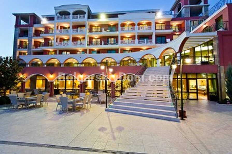 St. George Plaza is located just 300 meters from the sea, in a very convenient residential area of Saint Vlas. It is a gated and well-maintained residential complex with round-the-clock security and video surveillance. On its territory, there is everything necessary: a swimming pool for adults and children, a restaurant, a bar, a playground, as well as a pharmacy and shops. A large Mercury supermarket is located nearby. The annual maintenance fee is only 10 EUR/sq.m. (or 550 EUR per year / about 46 EUR per month), which is an excellent indicator for a complex with year-round security and such a wide range of amenities.