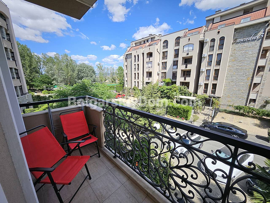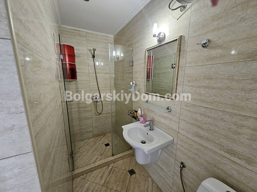 The perfect combination of comfort, style and convenience is exactly how you can describe this spacious studio with an area of 49 square meters, located on the second floor in a modern complex of Sunny Beach. The layout is thought out to the smallest detail: a bright living room with a kitchen is the heart of the apartment; a comfortable hallway; a bathroom with a shower and toilet; the terrace overlooks the pool and the courtyard of the complex. The studio's special feature is its smart zoning. The sleeping place is separated by a light partition, which creates the feeling of a separate bedroom — comfort, like in a two-room apartment! All furniture and appliances are in excellent condition, ready for new tenants to move in now.