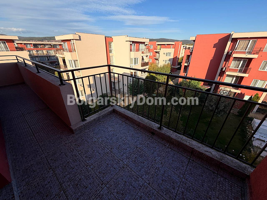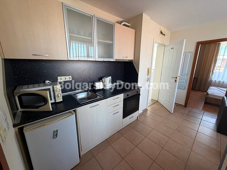 Excellent offer for a large family! We present a two-bedroom apartment of 66 sq.m. in the huge family complex Holiday Fort Club on Sunny Beach. This apartment is located on the 4th floor, fully furnished and equipped with appliances, which means it is ready for immediate move-in! The layout includes a living room with a kitchen area, two separate bedrooms, a bathroom, and a large balcony overlooking the green area of the complex.