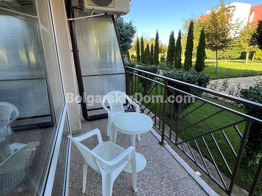 Top-1 by liquidity from Bolgarskiy Dom! We present a studio in immaculate condition located in the famous Holiday Fort Club complex in Sunny Beach. This 40 sq.m. property is on the ground floor and is ideal for those looking for a turnkey solution for rental or personal holidays, thanks to its impeccable condition and attractive price. The layout includes a functionally zoned kitchen-living-dining area, a bathroom, and a cozy terrace. The studio is sold fully furnished and equipped with all necessary appliances — from a refrigerator and hob to an iron and vacuum cleaner. Direct sale from the owner ensures a fast and transparent transaction.