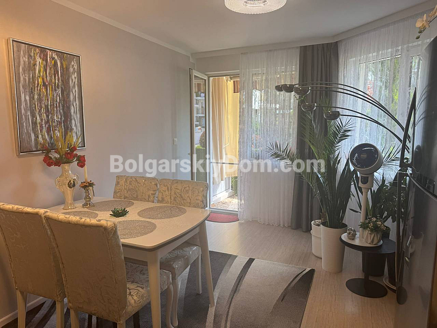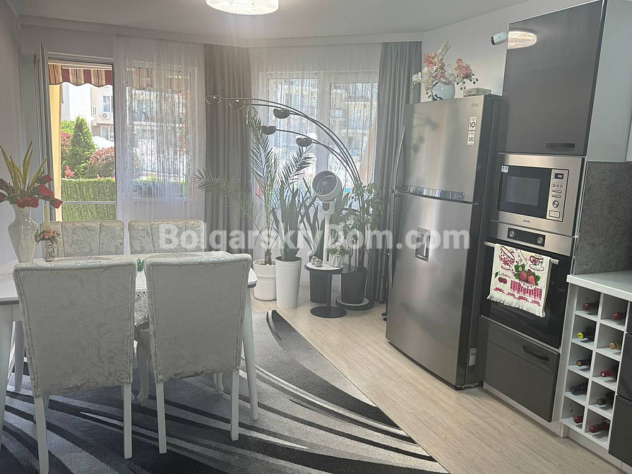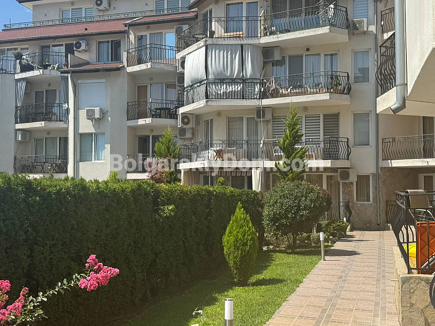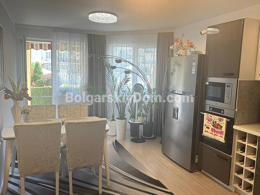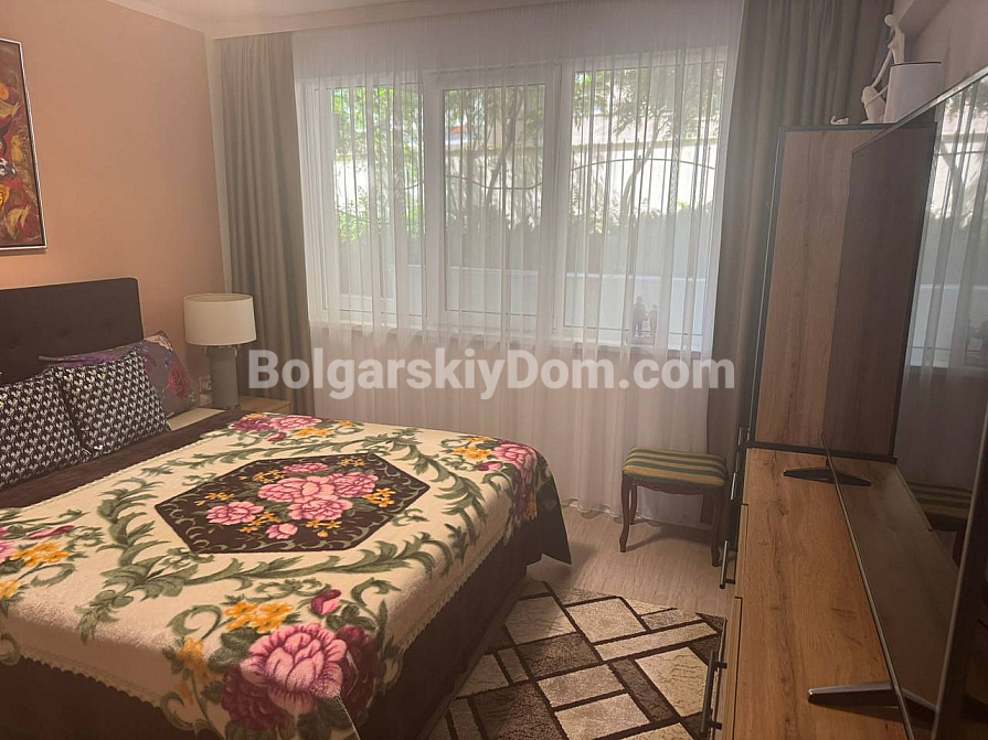 Excellent offer in Saint Vlas from Bolgarskiy Dom! We present a two-bedroom apartment of 77 sq.m. in excellent living condition in the Dolphin Bay complex. The apartment is located on the first floor of a five-story building and is sold with a finished interior and a standard set of furniture, meaning it is ready for immediate move-in.