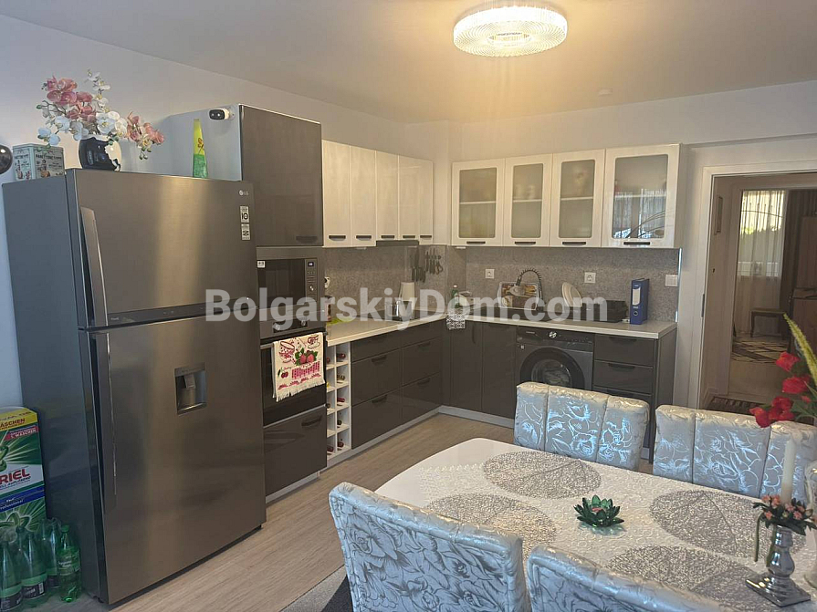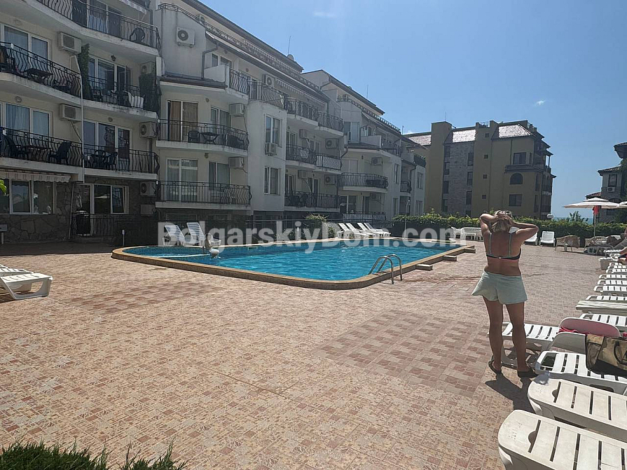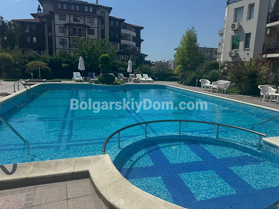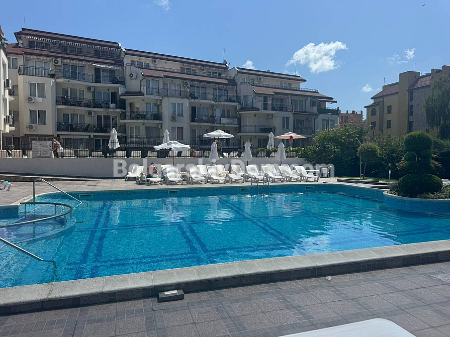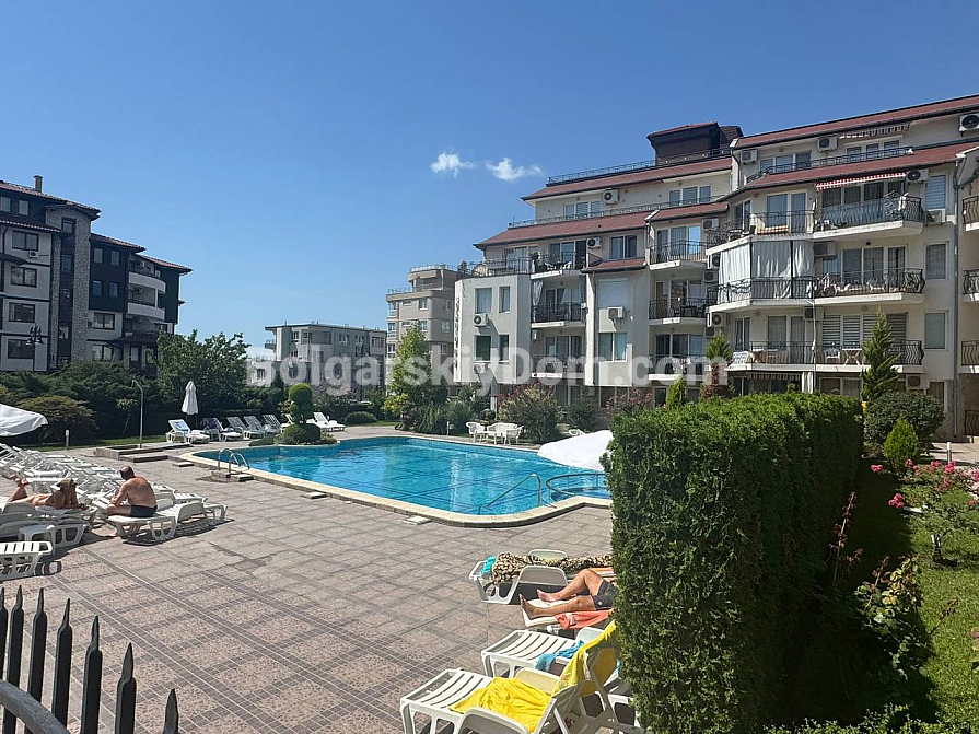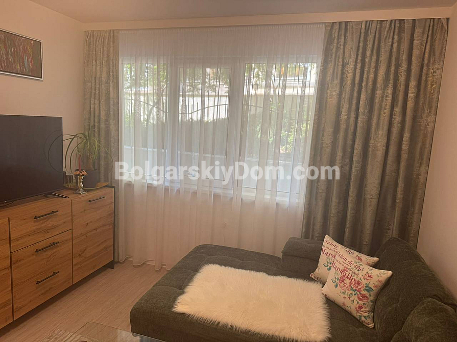 Excellent offer in Saint Vlas from Bolgarskiy Dom! We present a two-bedroom apartment of 77 sq.m. in excellent living condition in the Dolphin Bay complex. The apartment is located on the first floor of a five-story building and is sold with a finished interior and a standard set of furniture, meaning it is ready for immediate move-in.