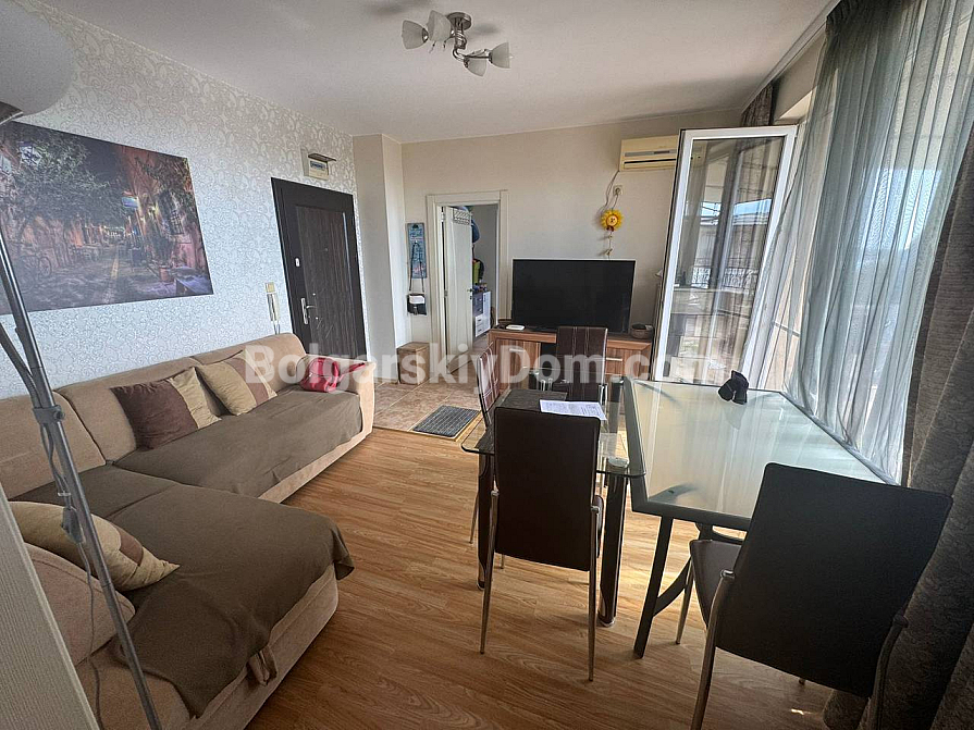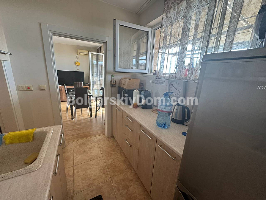 A super-profitable two-bedroom apartment with three spacious terraces has appeared in the catalog in the Melia 9 complex, right in the center of Ravda! This 85 sq.m. apartment is located on the 5th floor and just 150 meters from the beach. The apartment is sold fully furnished and equipped, meaning it is ready for immediate move-in. The layout is maximally comfortable for a family: living room with kitchen, two separate bedrooms, a bathroom with toilet, and a unique feature – three spacious terraces. This property is perfect for summer vacations, year-round living, or as an investment thanks to its excellent condition and location. Call us!