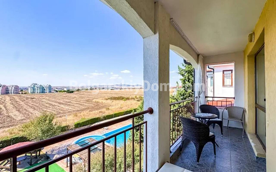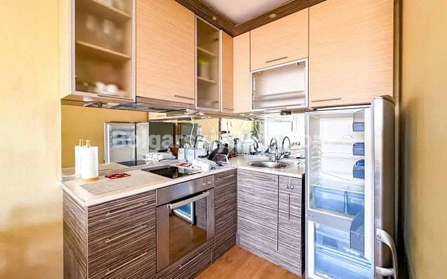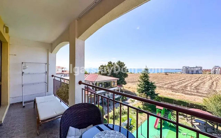Take a look at this rare listing: a one-bedroom apartment with a fantastic sea view in the Rutland Beach complex, located literally on the first line in Ravda, just 50 meters from the water. This is your chance to wake up to the sound of the waves! The apartment is spacious, 72 sq.m., situated on the 4th floor and fully ready for move-in: it comes with all furniture and household appliances. The only detail to note is that this building does not have an elevator. The layout is very convenient: entrance hall, large living room combined with a kitchen, separate bedroom, bathroom with a shower cabin, and of course, a balcony. The balcony offers that very beautiful view of both the sea and the complex’s pool.