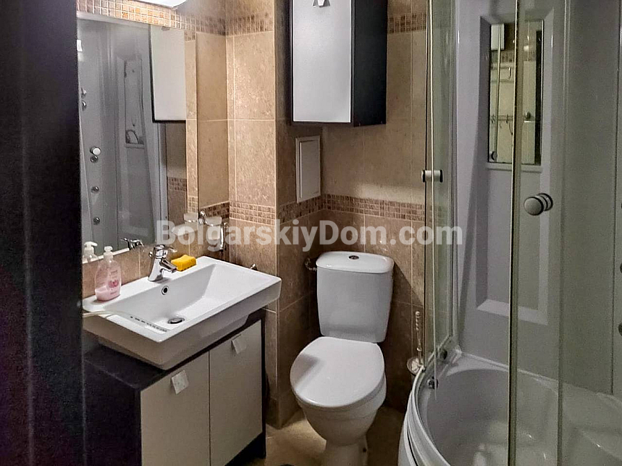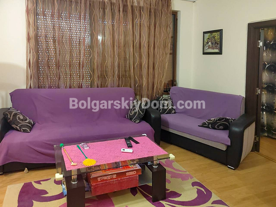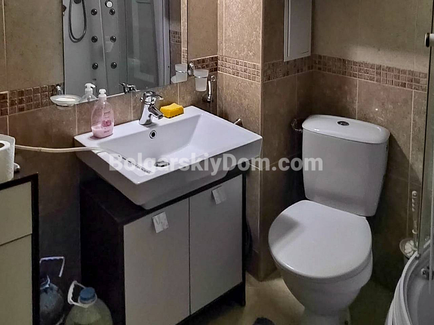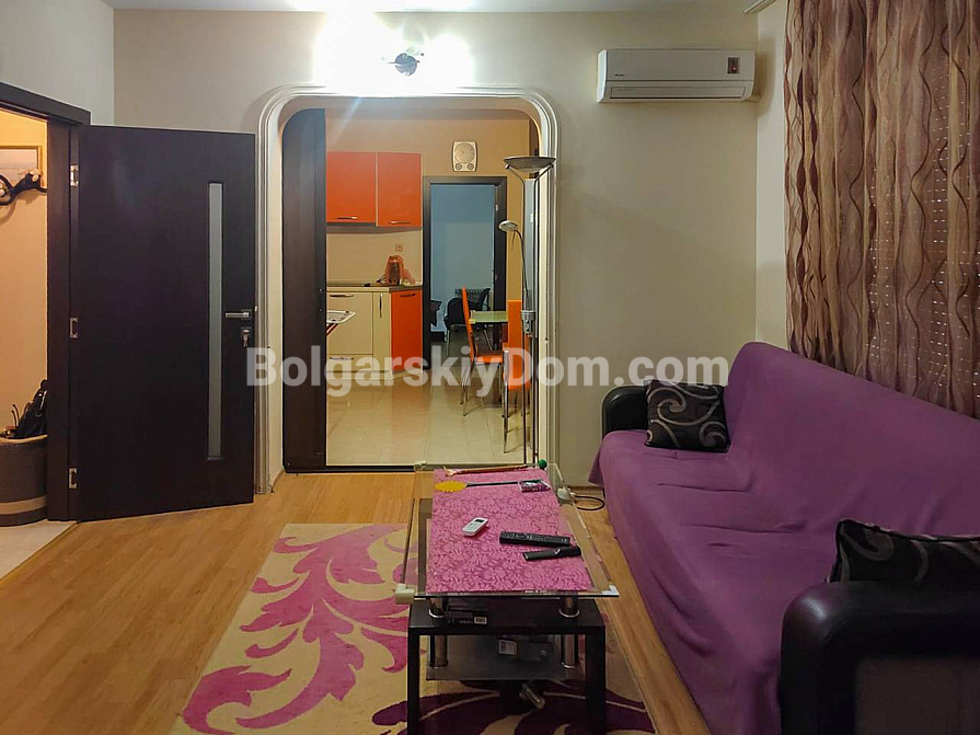This is a real find! Looking for the perfect space for a big family? Here it is — a spacious four-room apartment of 100 sq.m. with three bedrooms, two bathrooms, and two terraces in the Elitonia Gardens 2 complex in Ravda. This is a fully finished, turnkey home located on the ground floor, just 100 meters from the sea! The interior is truly special, combining bright accents with warm, homely tones. The kitchen is equipped with modern cabinets in vibrant colors, a hob, sink, and even a washing machine, with the workspace arranged for maximum comfort. A cozy living room with two sofas, a coffee table, and a large window is perfect for relaxation. You don’t need to buy anything extra — the apartment is sold fully furnished and equipped.