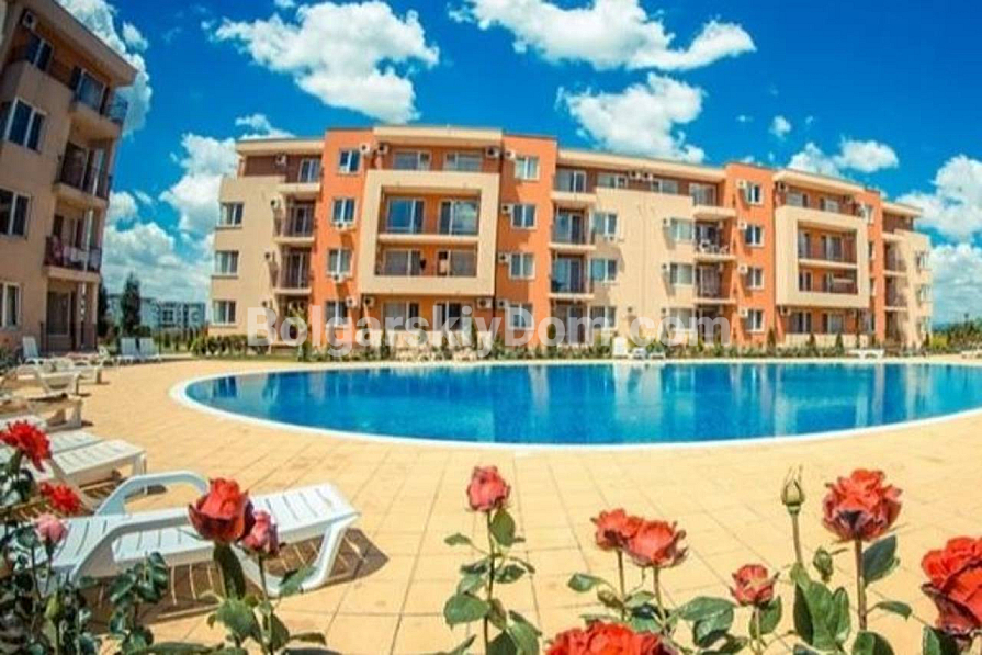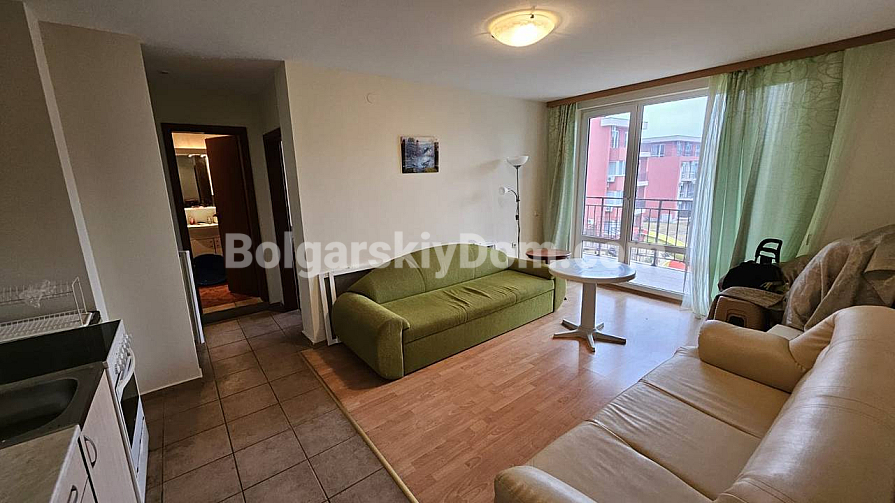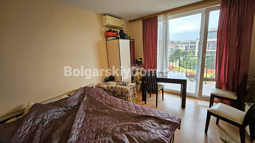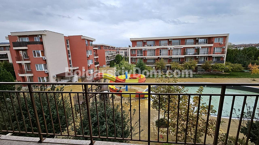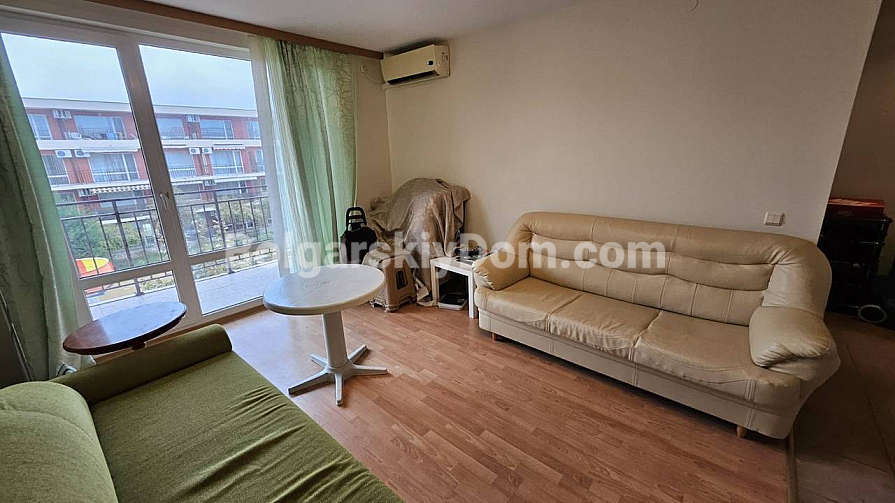 Perfect family option with a pool view! We present a spacious two-bedroom apartment of 80 sq.m. in the large family complex Holiday Fort Club in Sunny Beach. This apartment is located on the 3rd floor, offers a direct view of the pool, and is fully ready for its new owners: it is sold with furniture and household appliances. The layout is ideal for a family: an entrance hall, a living room with a kitchen area, two separate bedrooms, a bathroom, and a large balcony.