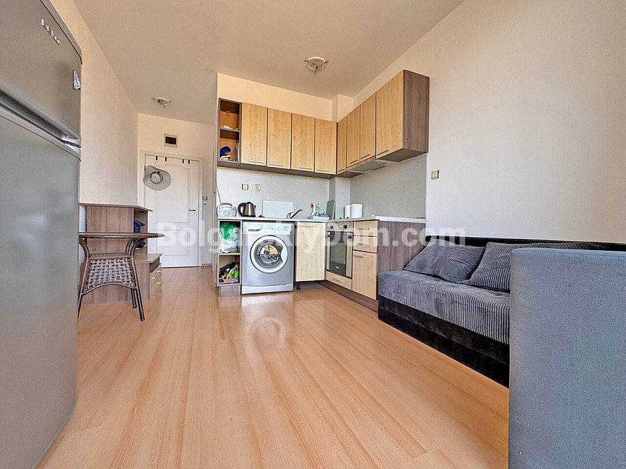 Sunny Day 5 is located in the suburbs of Sunny Beach, just 4 km from the sea. The complex has controlled access, and its territory is perfectly arranged for comfort: a large central pool with loungers and umbrellas, a children’s playground, a secured parking area for owners, and well-maintained alleys for walking. Just 4 km away, in Sunny Beach, you will find all infrastructure: supermarkets, restaurants, schools, clubs, casinos, and fruit markets. The annual maintenance fee is 580 euros. This is the most affordable way to own property on the coast!