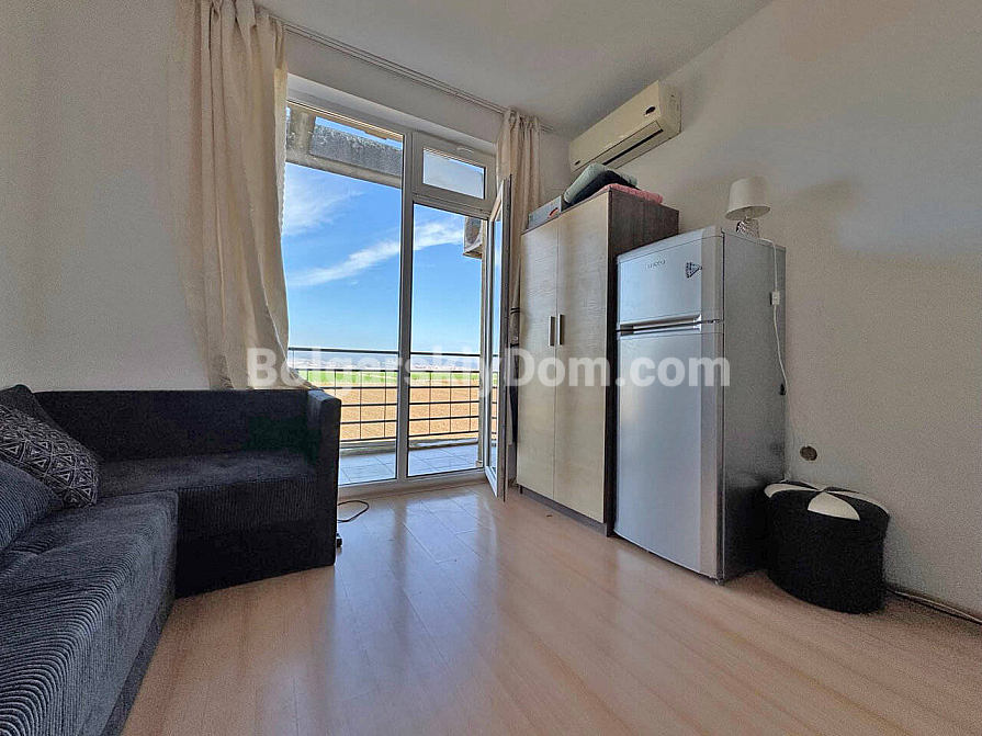Budget start to your own home! Presenting a cozy studio of 26 sq.m, sold with all necessary furniture and appliances, in the Sunny Day 5 complex. This is an ideal, fully ready option for vacation or rental. The studio is located on the 4th floor. The interior is bright, with a balcony offering views of the distant mountains and the plain.