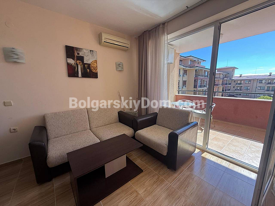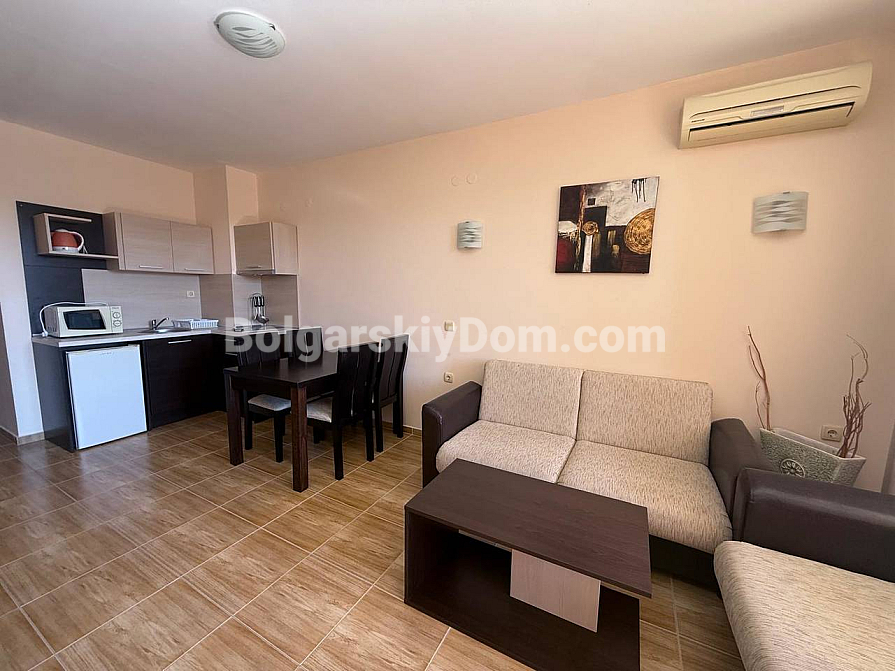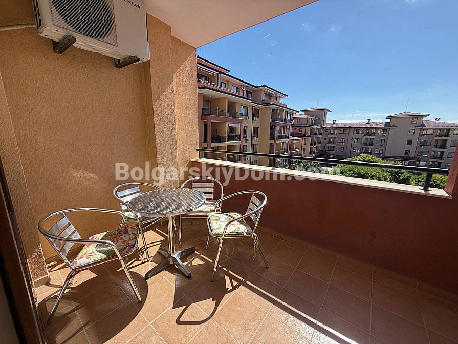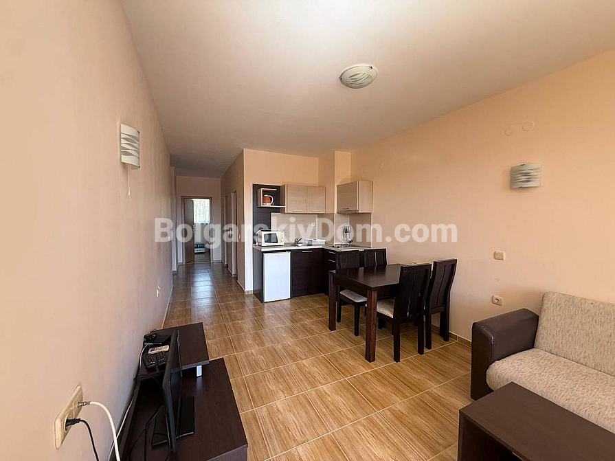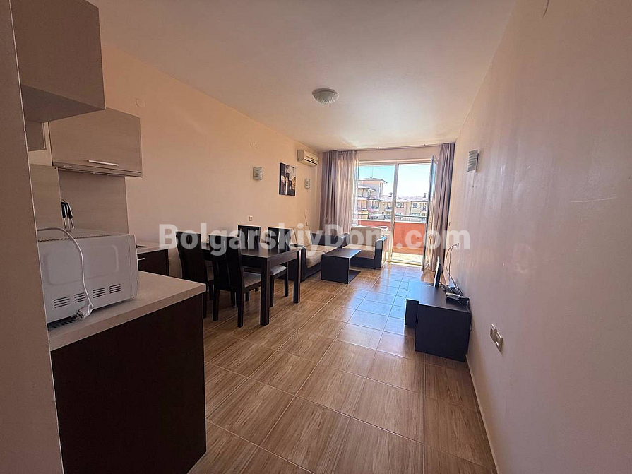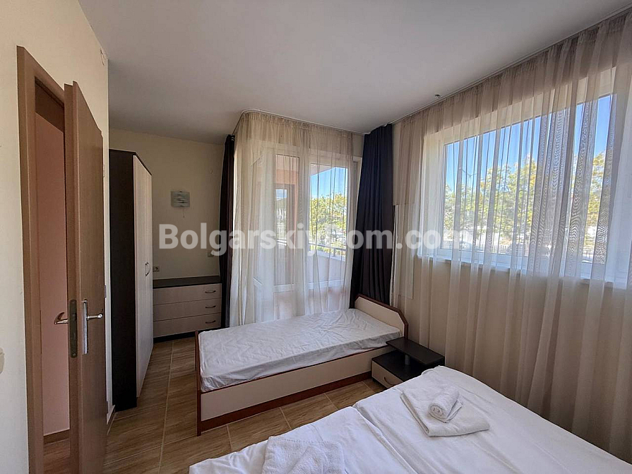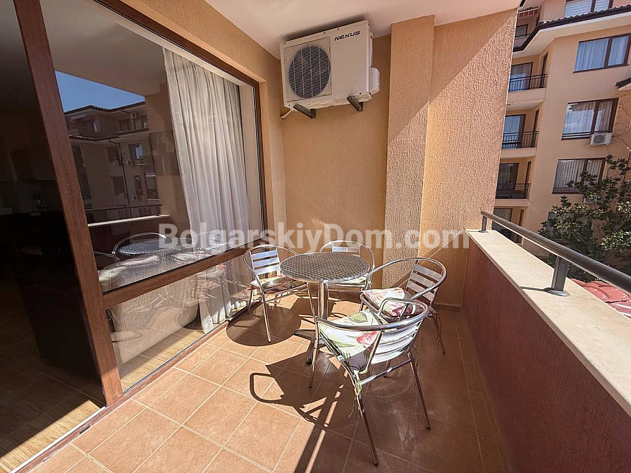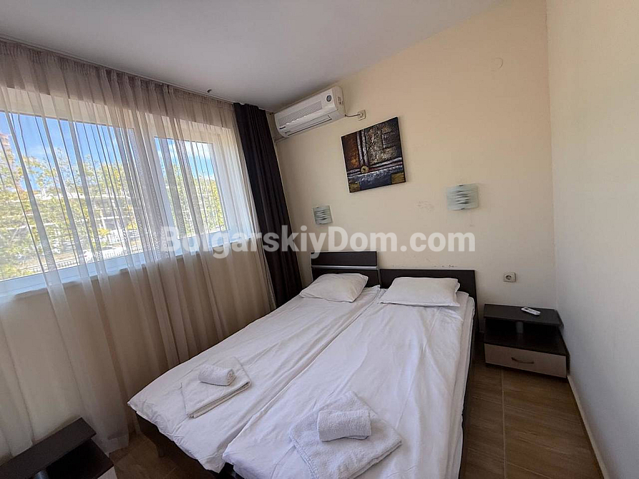 New listing in a top seaside resort! Bolgarskiy Dom presents a stylish two-bedroom apartment with an area of 66 sq.m. in the Star Dreams complex in Saint Vlas! This unique property is located on the 3rd floor, fully furnished and ready for immediate move-in. The interior is a true masterpiece: designed in a modern boho style with creative décor and refined details that create an exceptional atmosphere of harmony. The kitchen is fully equipped, including a dishwasher and a large refrigerator, and the living room features a very large TV – every detail is designed for maximum comfort.