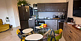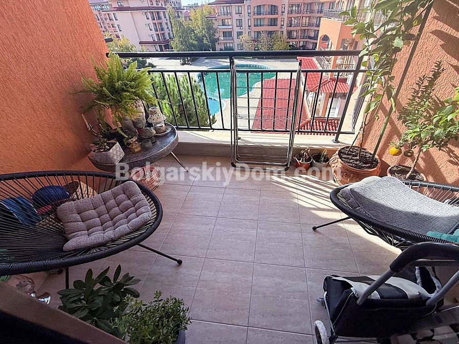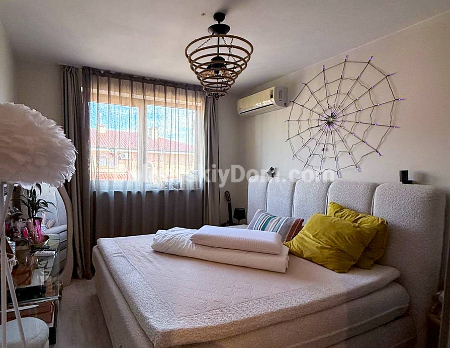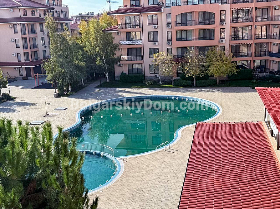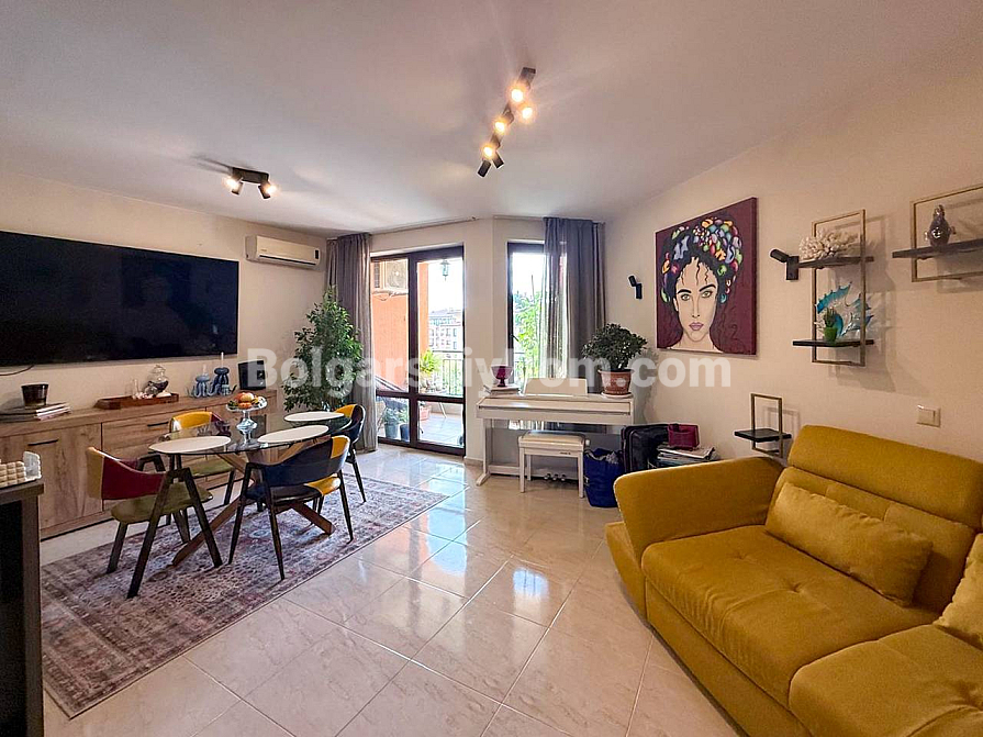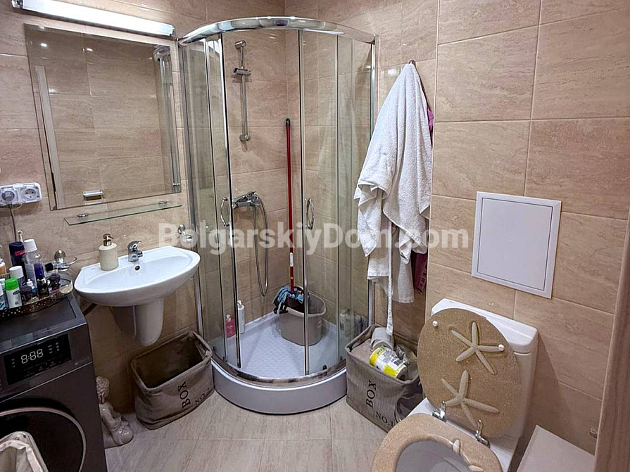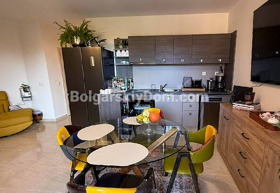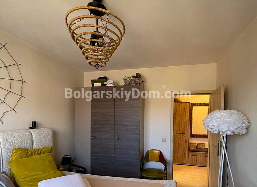 New listing in a top seaside resort! Bolgarskiy Dom presents a stylish one-bedroom apartment with an area of 66 sq.m. in the Star Dreams complex in Saint Vlas! This unique property is located on the 3rd floor, fully furnished and ready for immediate move-in. The interior is a true masterpiece: designed in a modern boho style with creative décor and refined details that create an exceptional atmosphere of harmony. The kitchen is fully equipped, including a dishwasher and a large refrigerator, and the living room features a very large TV – every detail is designed for maximum comfort.